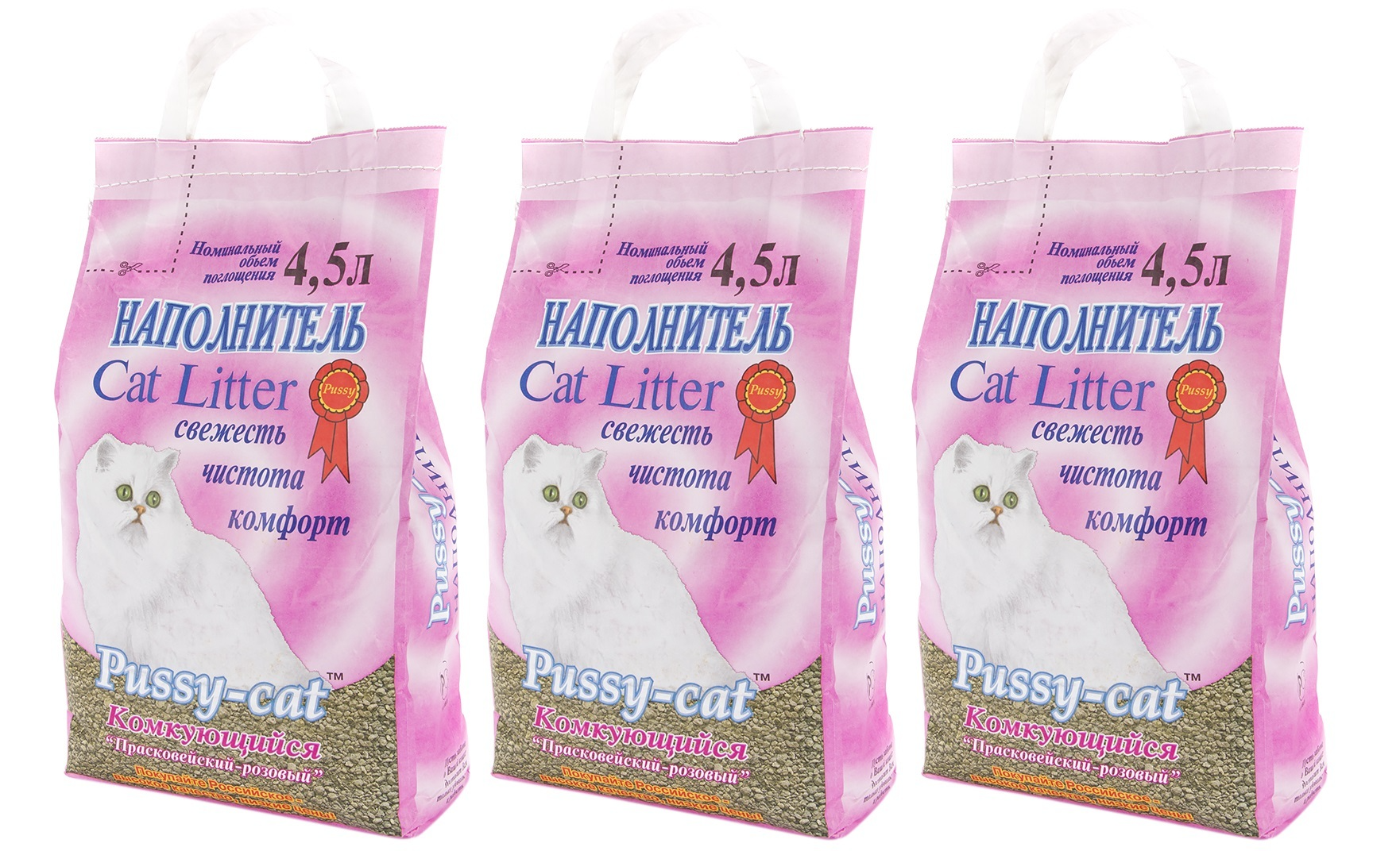 Pussy-cat 4,5л х 3шт комкующийся "Прасковейский розовый" наполнитель интересное:
