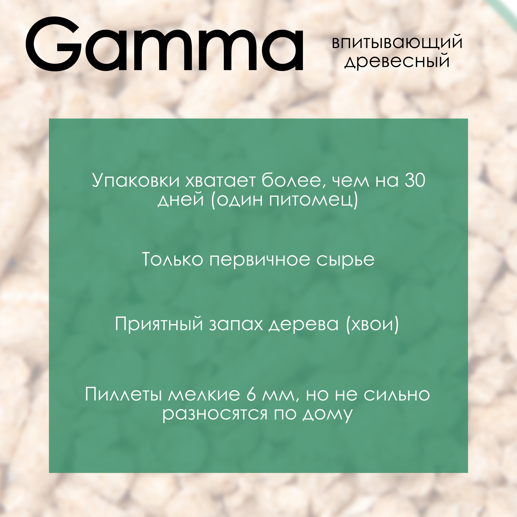 Гамма Наполнитель для кошачьих туалетов Gamma 15л, древесный впитывающий, мелкие гранулы
