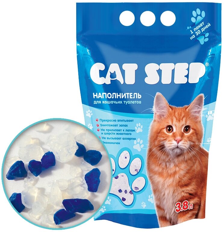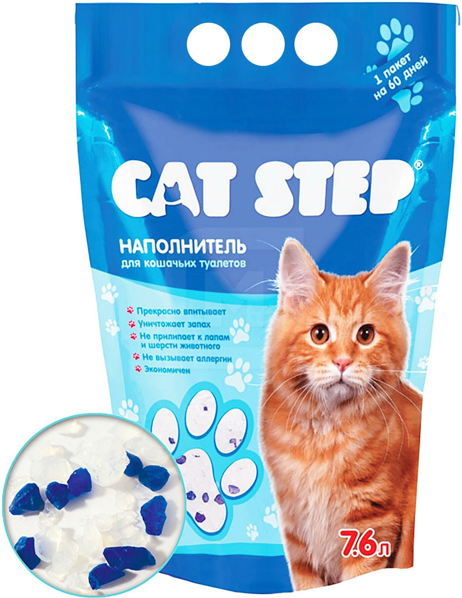 Наполнитель для кошачьего туалета CAT STEP Arctic Blue впитывающий силикагелевый, 7,6л