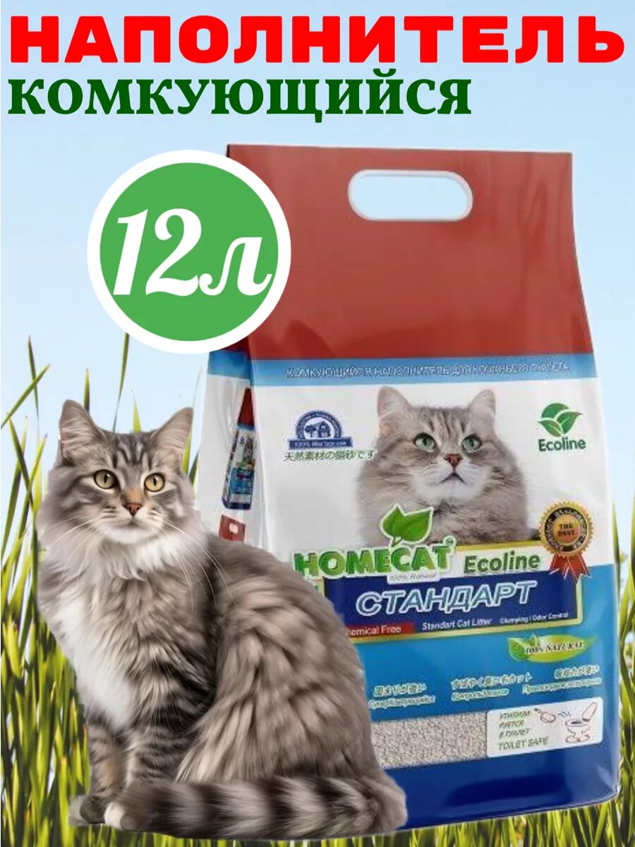 HOMECAT эколайн стандарт наполнитель комкующийся для туалета кошек (12 л)