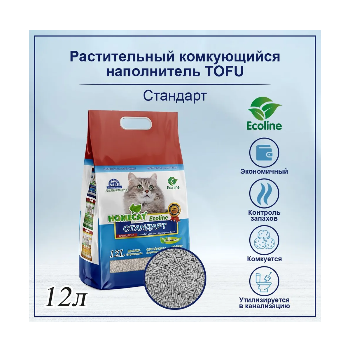Купить HOMECAT Эколайн Стандарт 12 л комкующийся наполнитель тофу для кошачьих туалетов без запаха