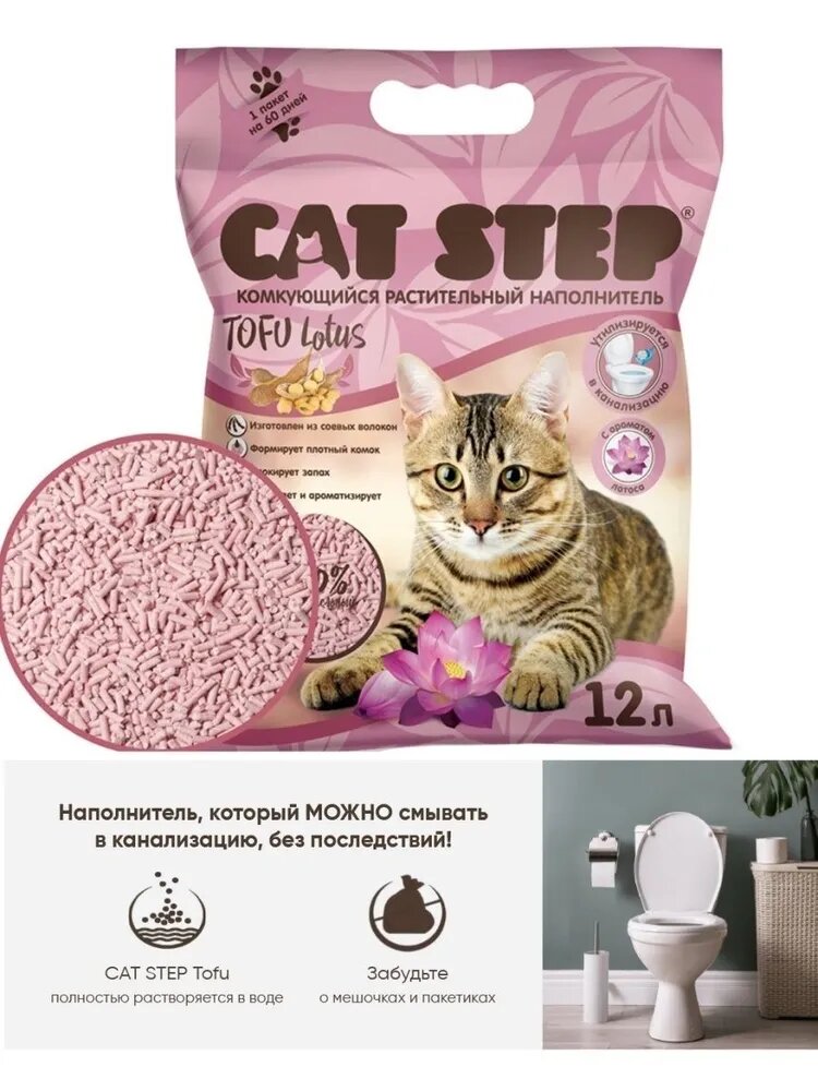 Cat Step Комкующийся растительный наполнитель Tofu Lotus, 12 л 20333007 5,62 кг 53627 (2 шт)