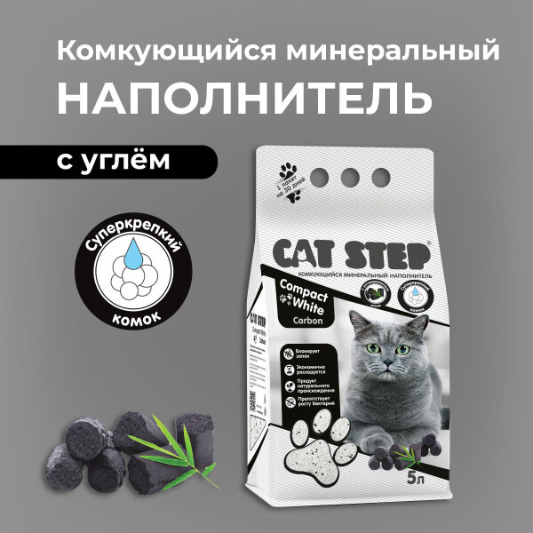 Наполнитель Cat Step комкующийся минеральный Compact White Carbon, 5л