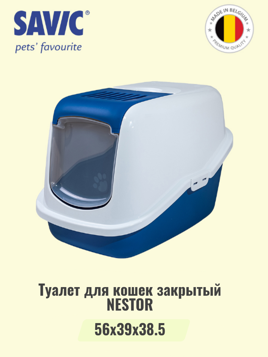 Туалет для кошек закрытый SAVIC NESTOR белый/холодный-синий (шампунь в подарок)