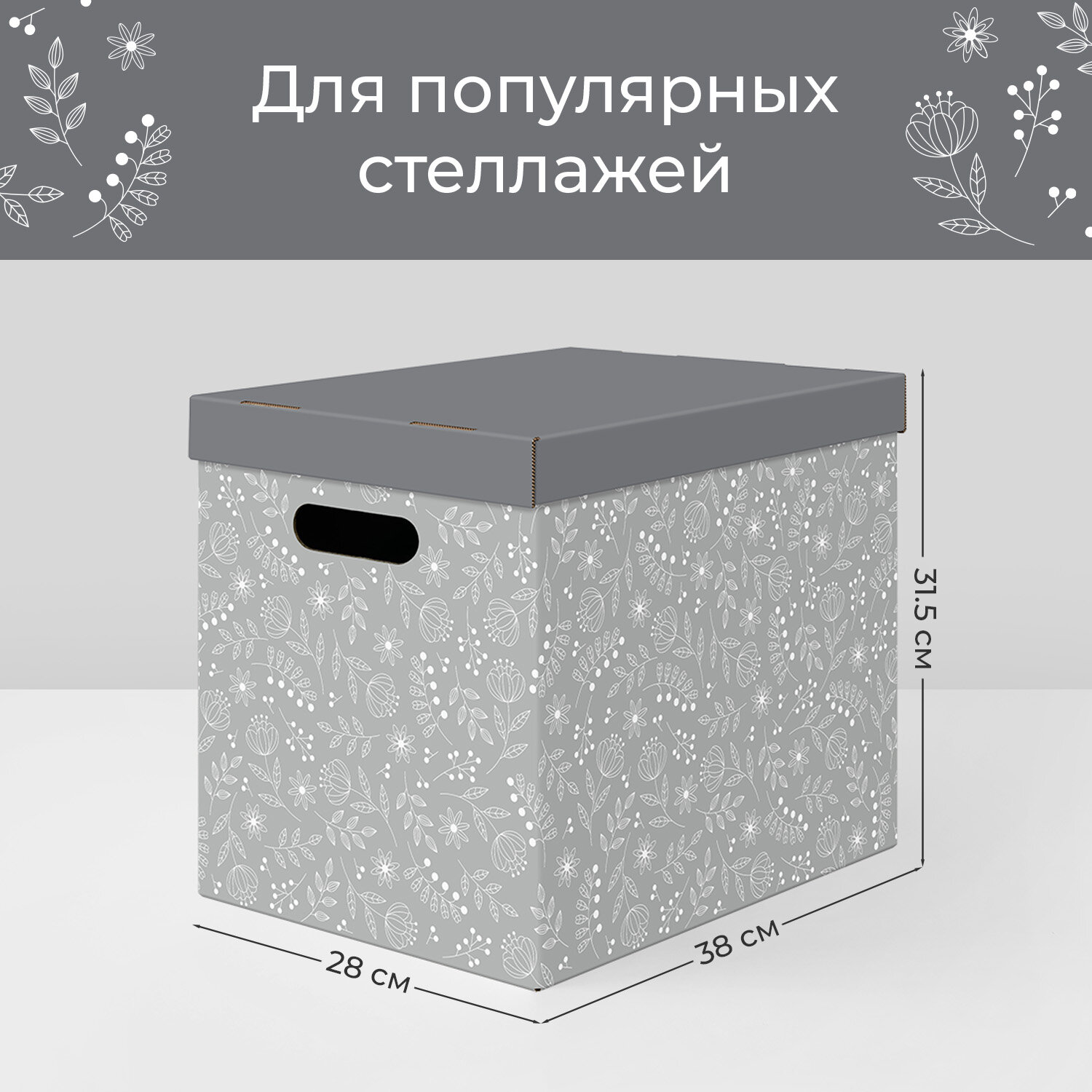 Купить Коробки для хранения вещей, игрушек, обуви, картонные, короб для хранения с крышкой, набор 8 шт., серые цветы