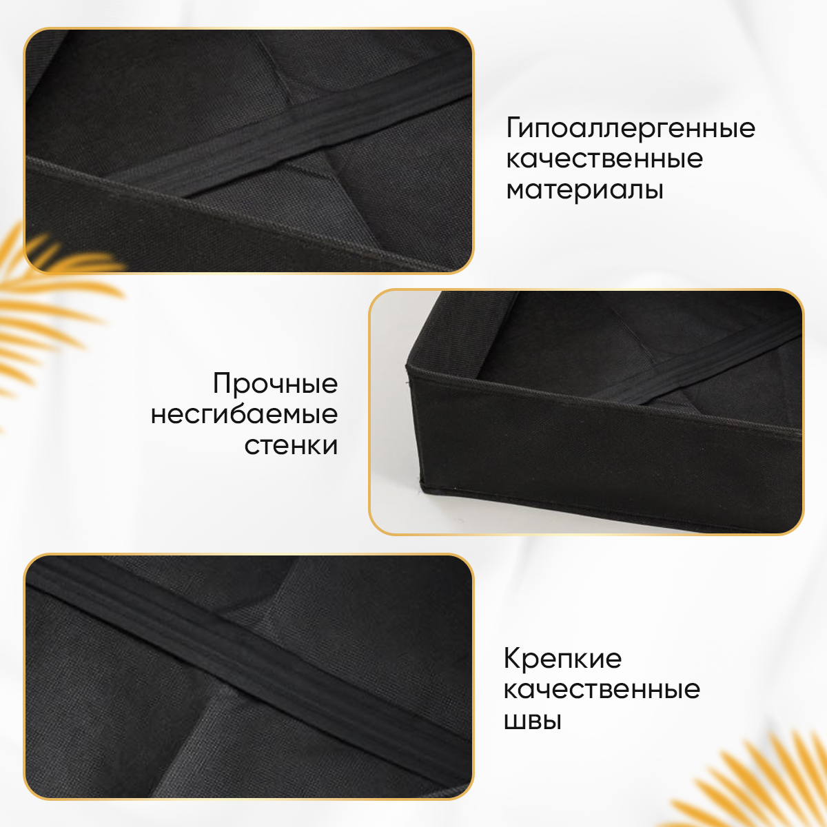 | Комплектация | Кофр для бюстгальтеров 7 ячеек - 1 шт 32х32х9,5см Кофр для носков и галстуков 8 ячеек - 1 шт 32х16х9,5 см Кофр для нижнего белья 24 ячейки - 1 шт 32х32х9,5 см Кофр для шарфов 6 ячеек - 1 шт 32х16х9,5 см |