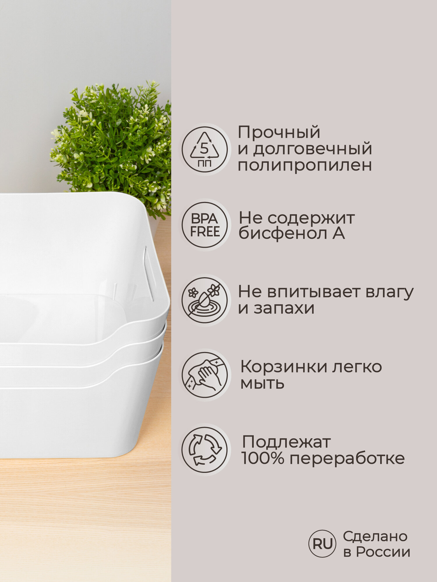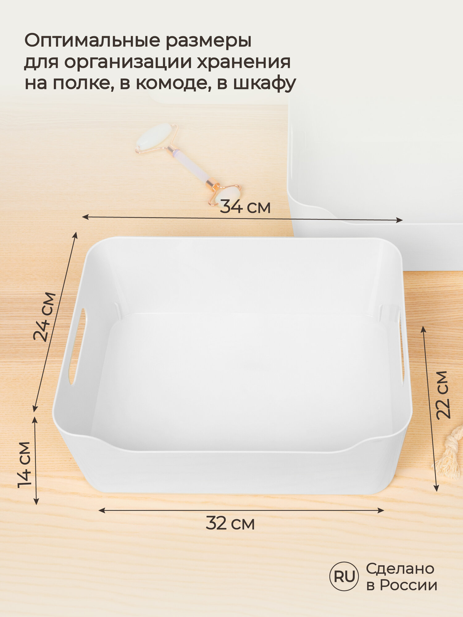 Корзина для хранения, без крышки, пластик, 10 л, 34×24×14 см, белый