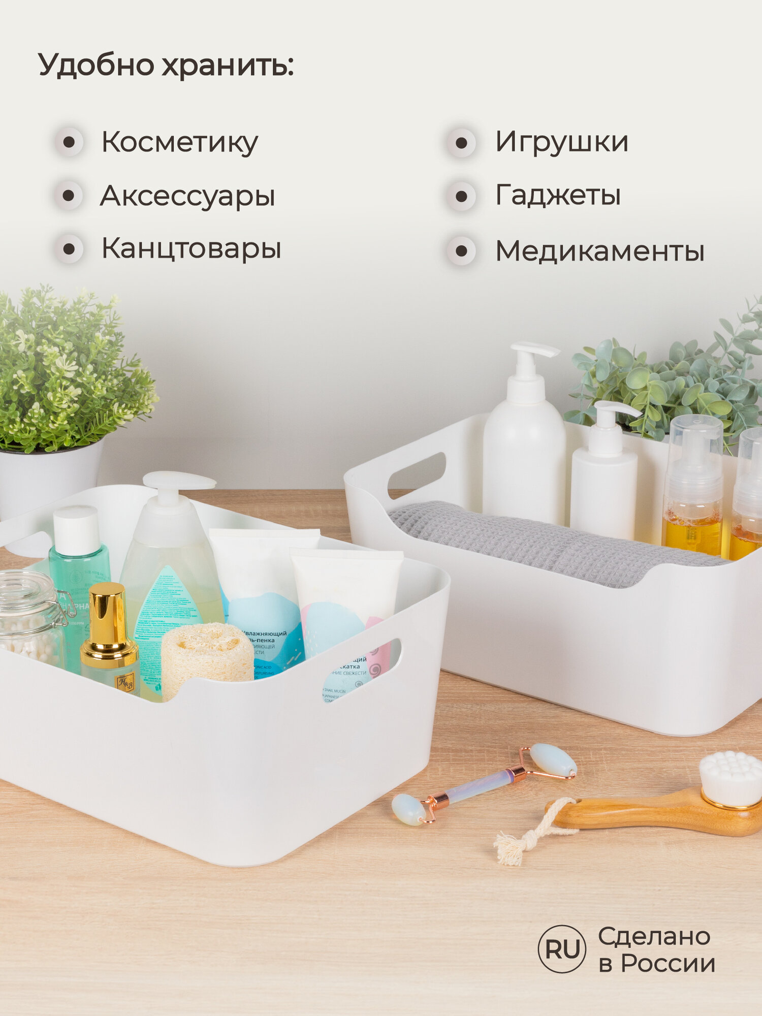 Органайзеры для хранения косметики, канцелярии, вещей, продуктов 10 л/ 3 шт набор, корзинки для ванной, кухни, пластиковые без крышки с ручками