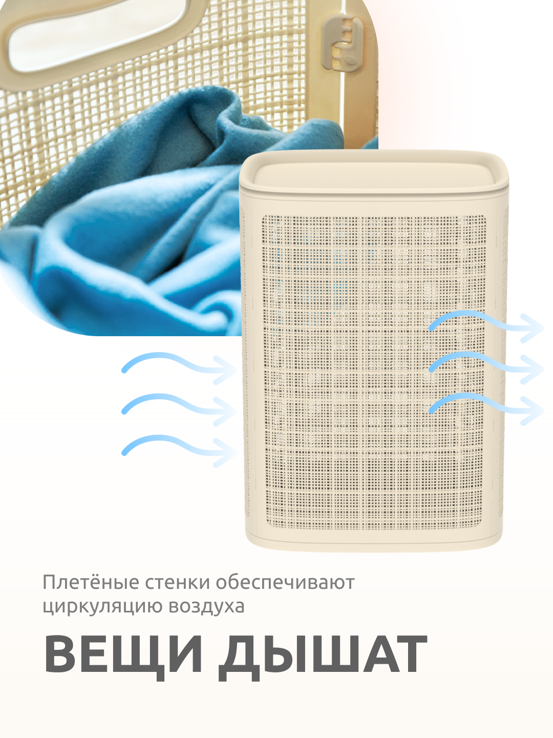 Корзина для белья «Лён», 75л, слоновая кость, Альт-Пласт, сборная, полипропилен