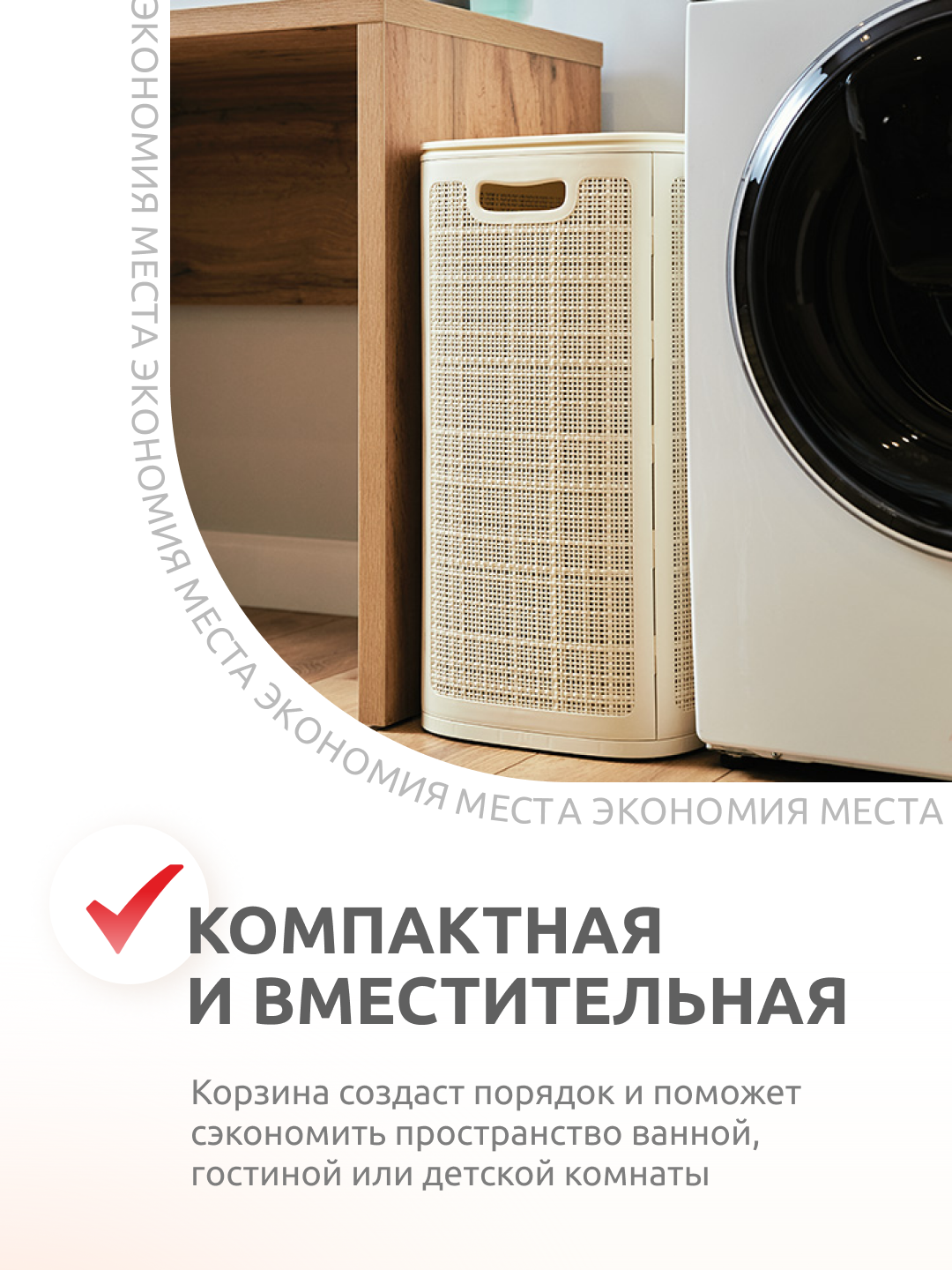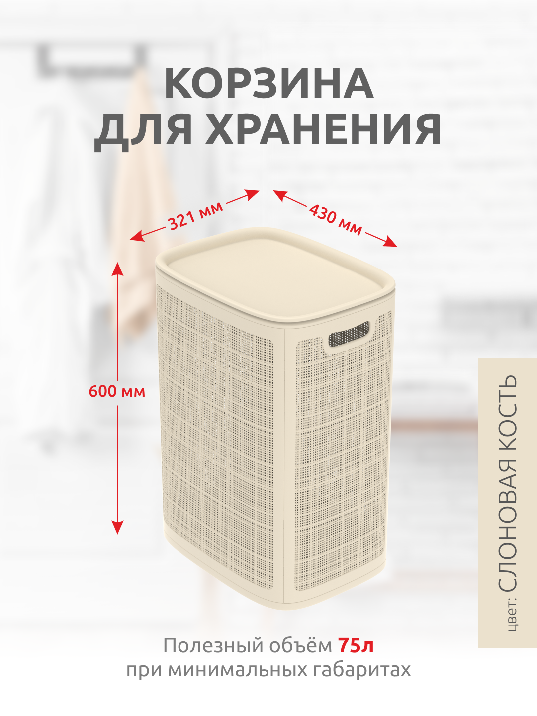 Купить Плетёная корзина для белья «Лён» 75л (слоновая кость)