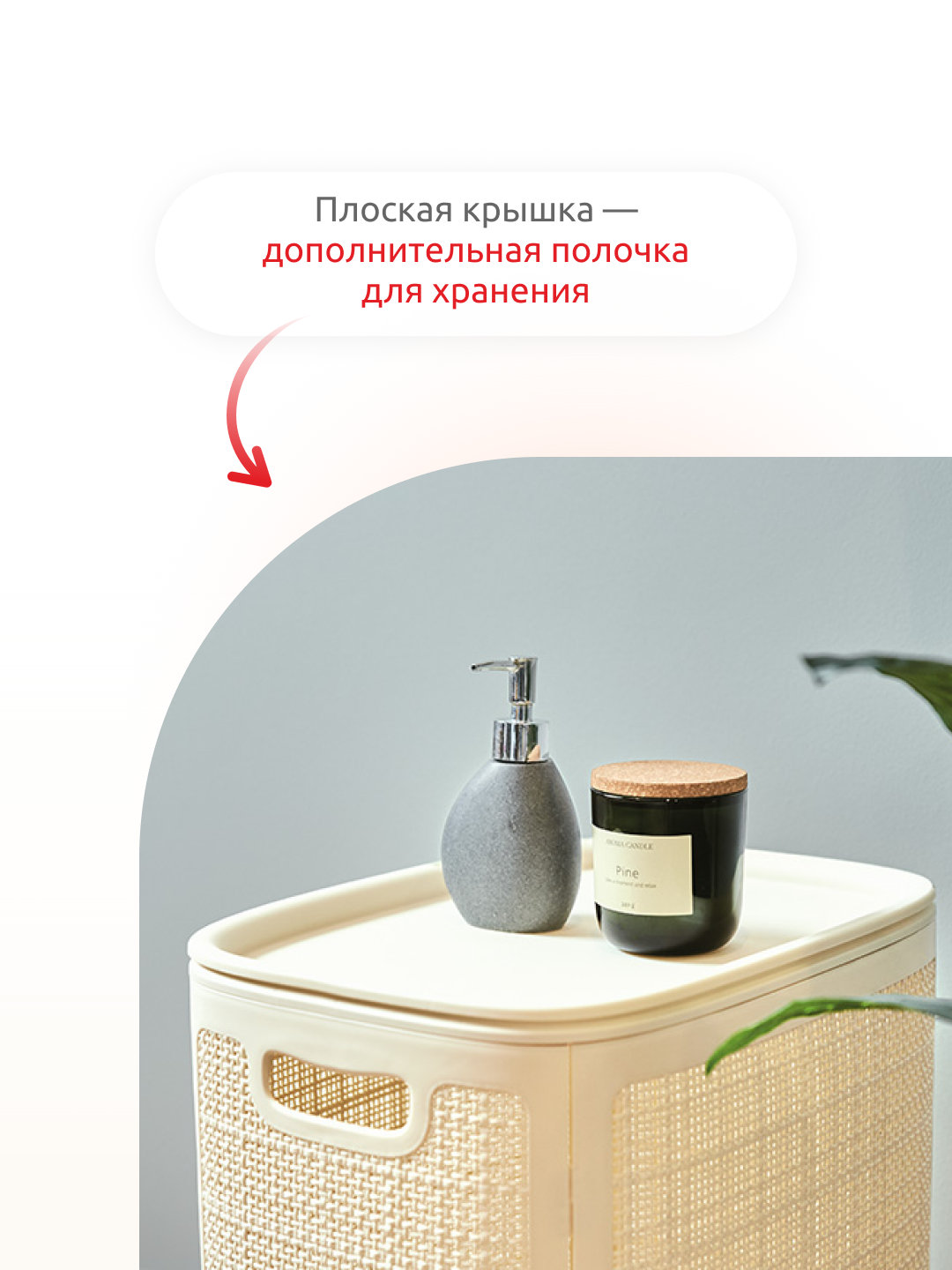 | Особенности | плетеная / ручки для переноски / с крышкой / складной / узкая |