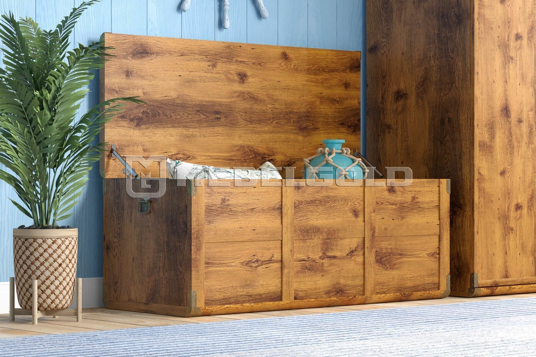 Сундук для хранения Indiana JKUF/120, дуб саттер, деревянный большой, для игрушек