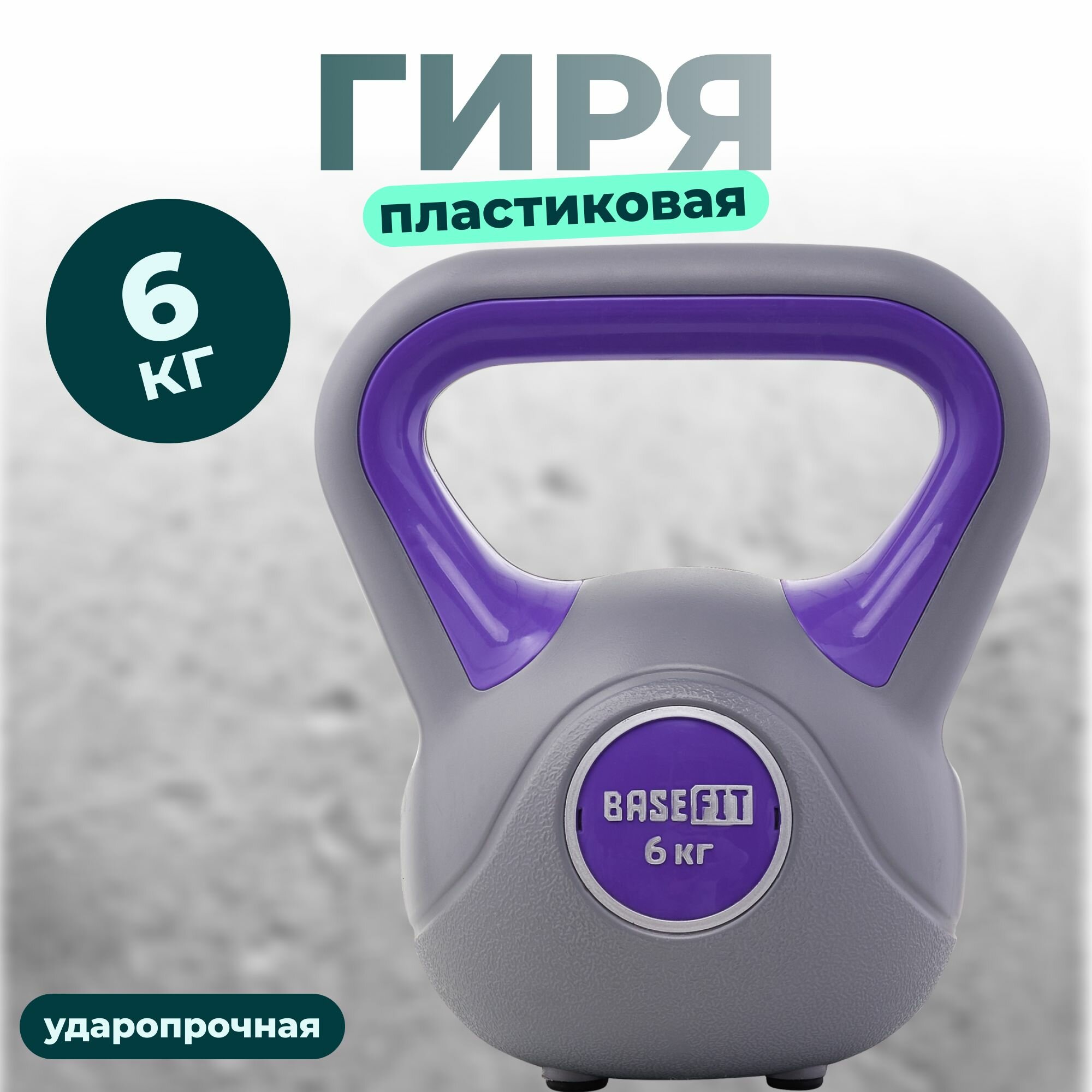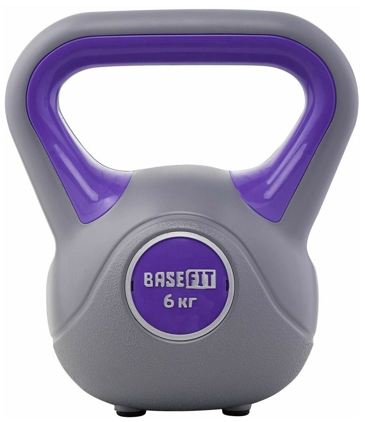 Гиря пластиковая BASEFIT 6 кг серая фиолетовая цельная для спорта фитнеса и кроссфита