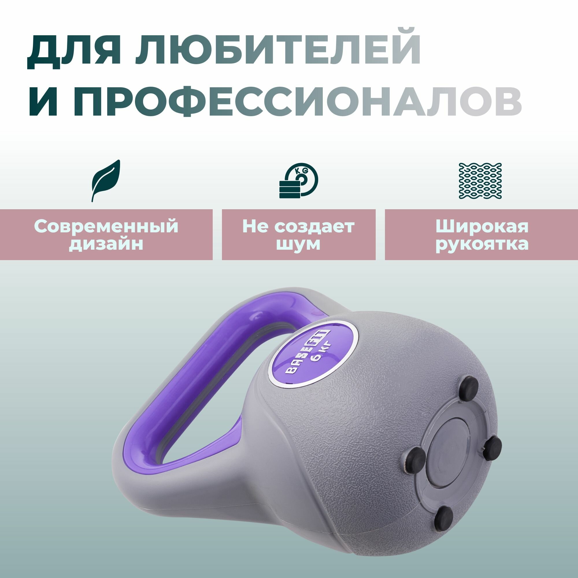 СохранитьГиря пластиковая DB-503, 6 кг, серый/фиолетовый, BASEFIT интересное: