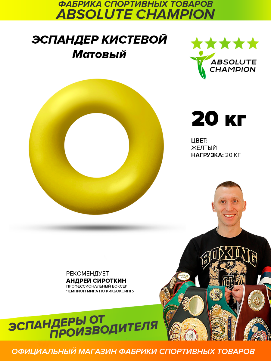Эспандер кистевой Absolute Champion матовый, цвет желтый, усилие 20 кг (0)