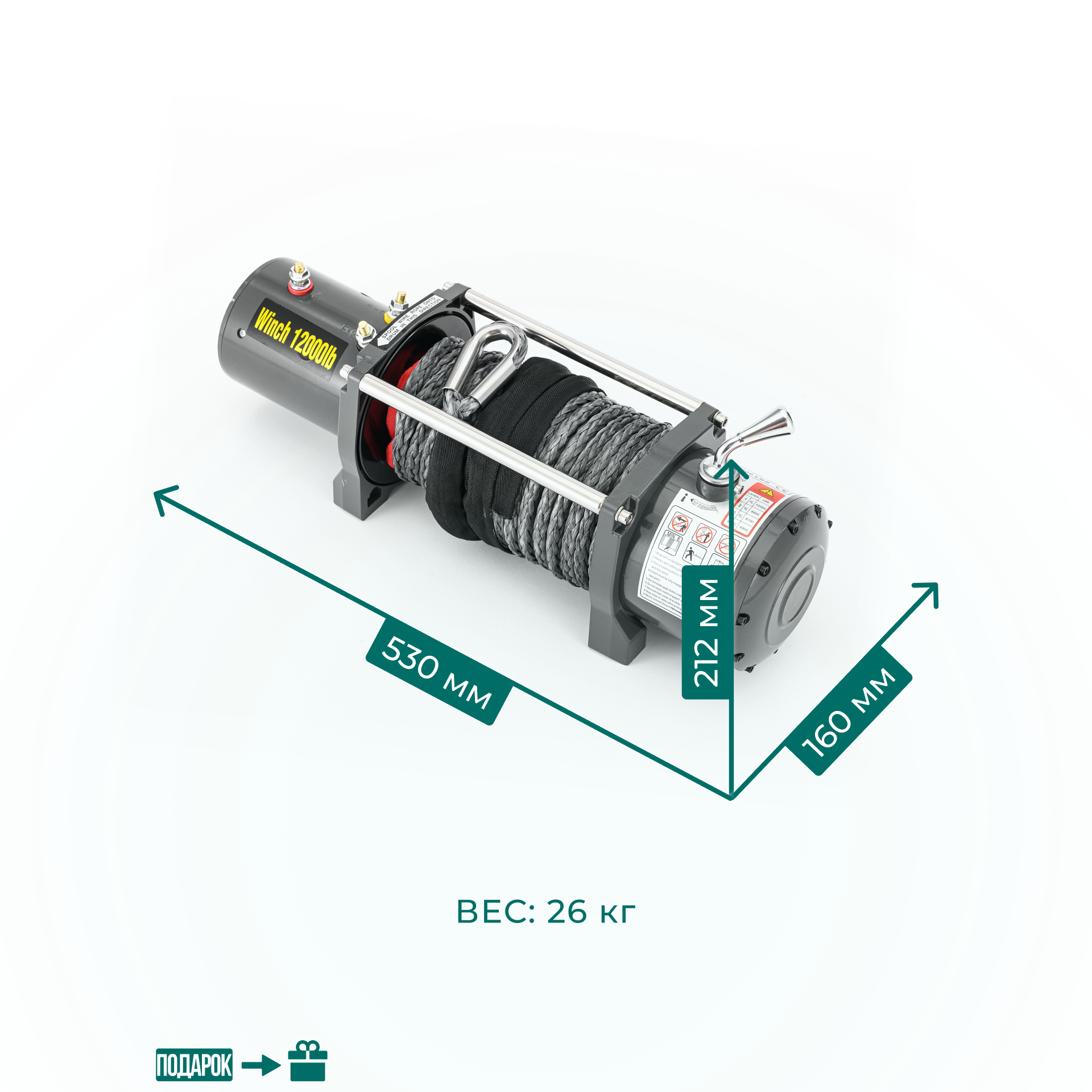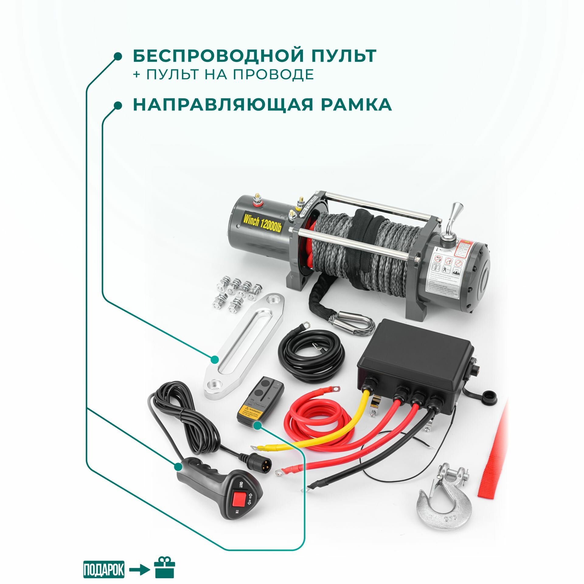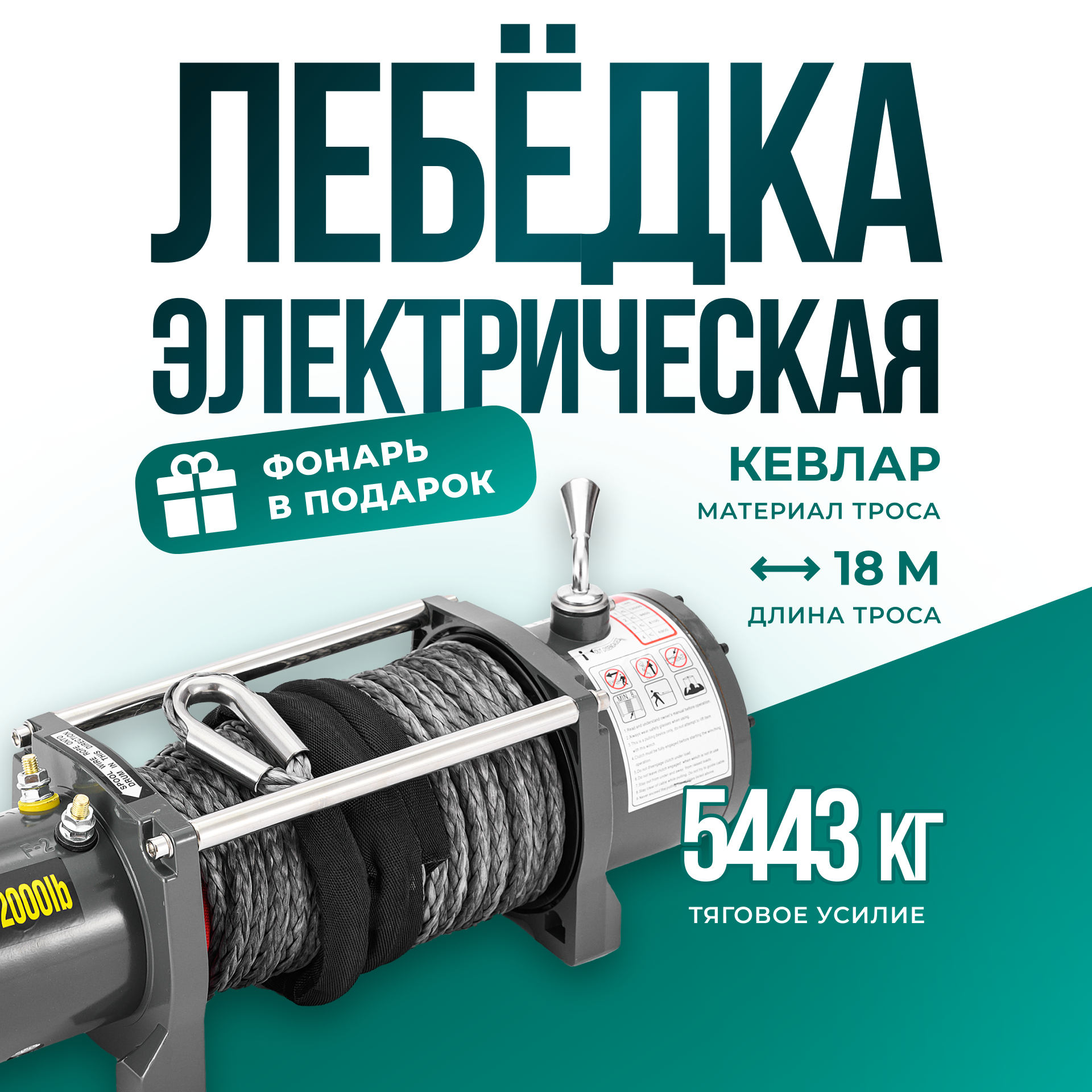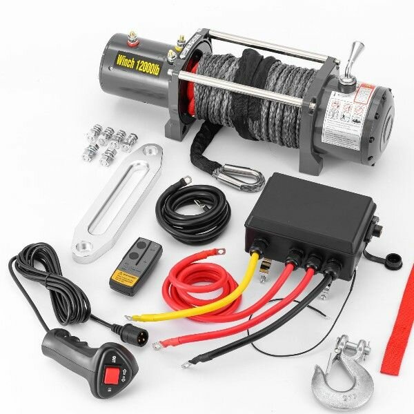Купить Лебедка автомобильная электрическая 12000 lbs 12V Electric Winch кевларовый трос/ автомобильная лебедка 12В грузоподъемность 5443 кг
