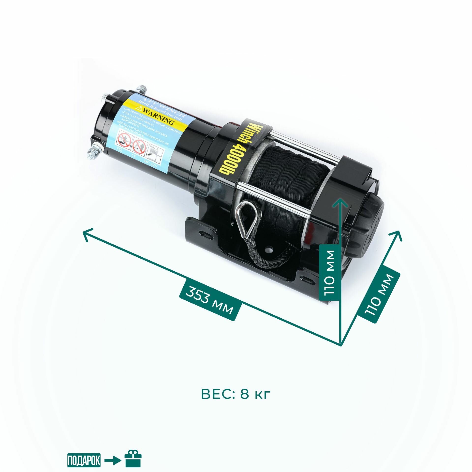 Купить Лебедка автомобильная электрическая 4000 lbs 12V Electric Winch синтетический трос/ лебедка 12В на Ниву, квадроцикл грузоподъемность 1815 кг