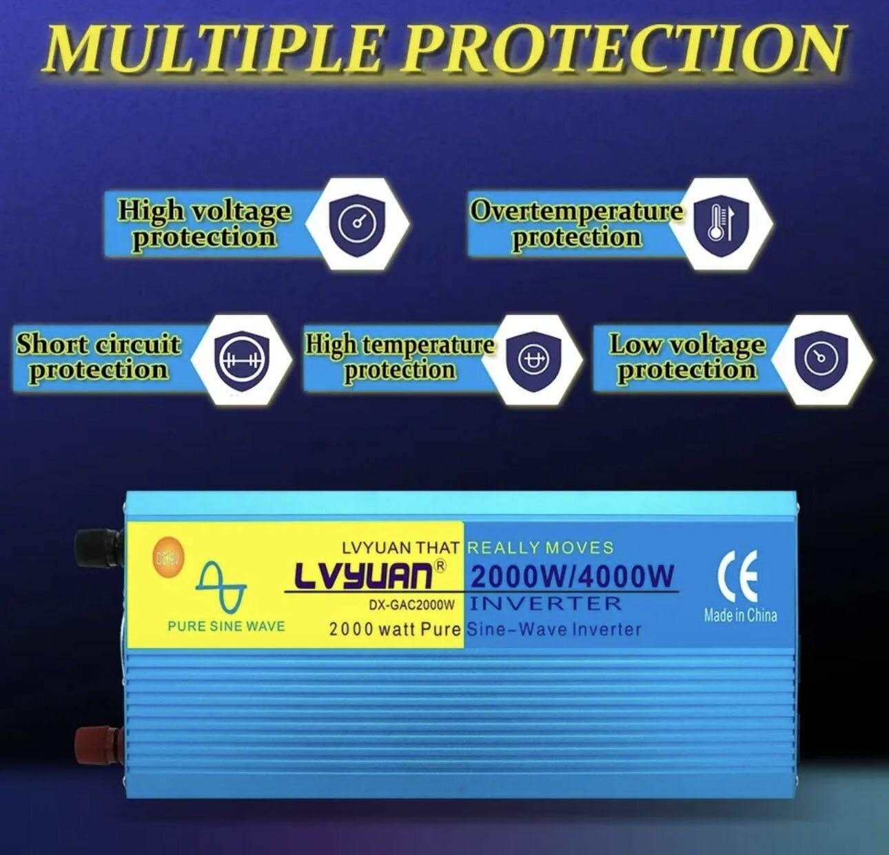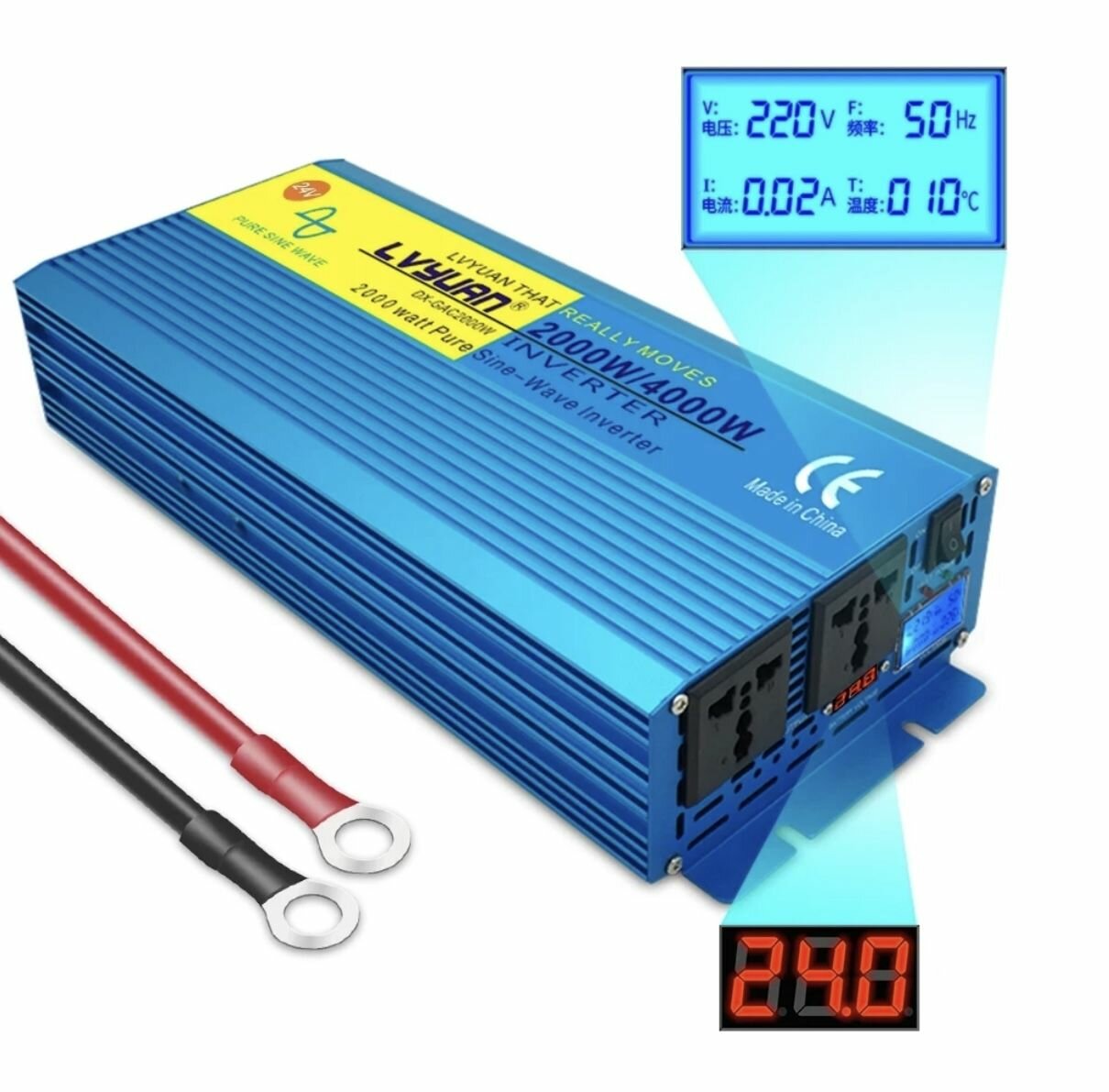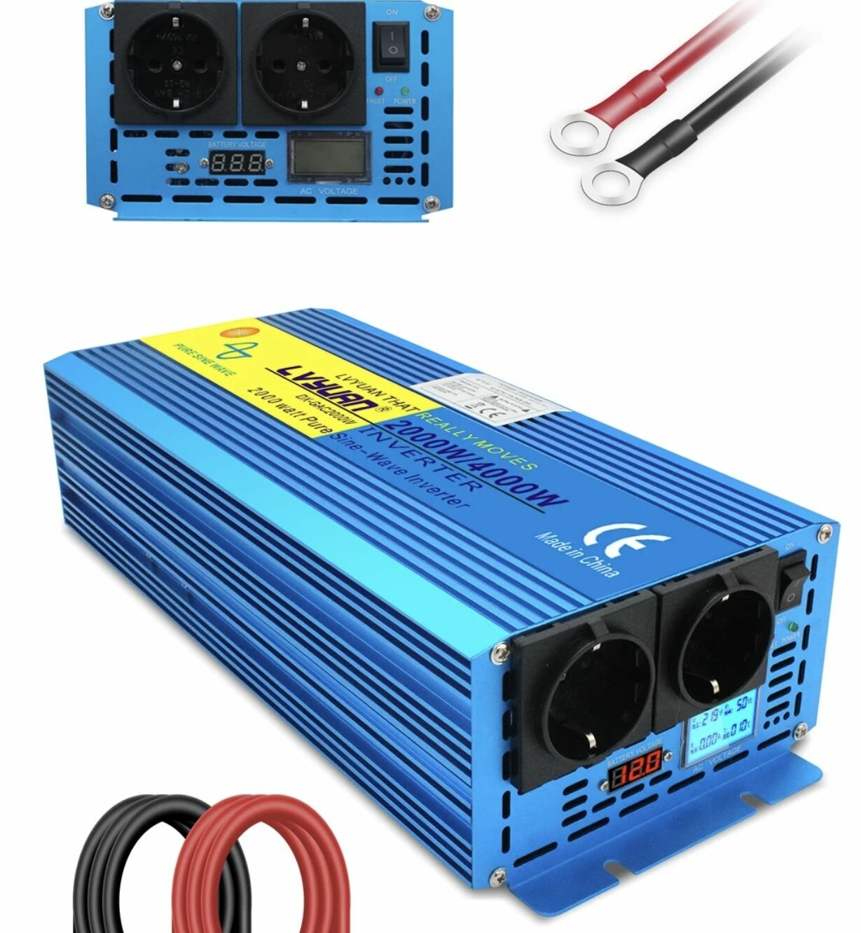 Автомобильный преобразователь напряжения 2000 Вт 12В-220В инвертор Lvyuan 2000w 12v-220v Power inverter. Чистый синус. Чистая, немодифицированная синусоида.