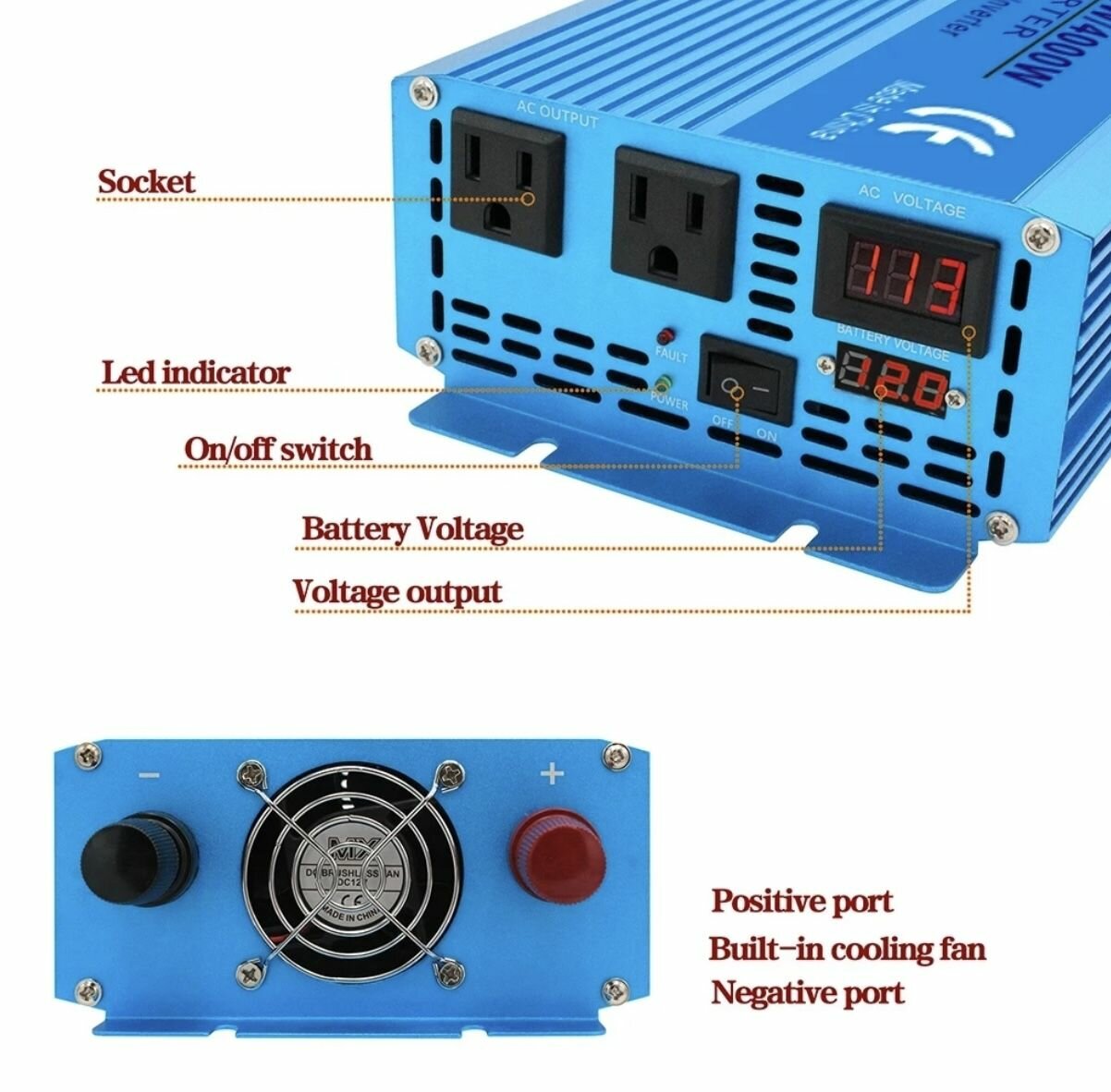 Автомобильный преобразователь напряжения инвертор 5000Вт 12В-220В. Lvyuan 5000W