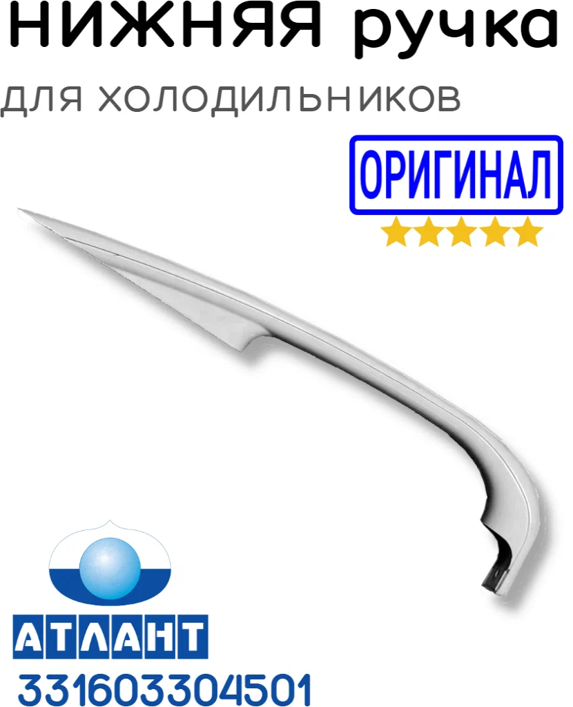 Ручка двери нижняя серебристая для холодильников Атлант, Минск (331603304505 + 331603304605)