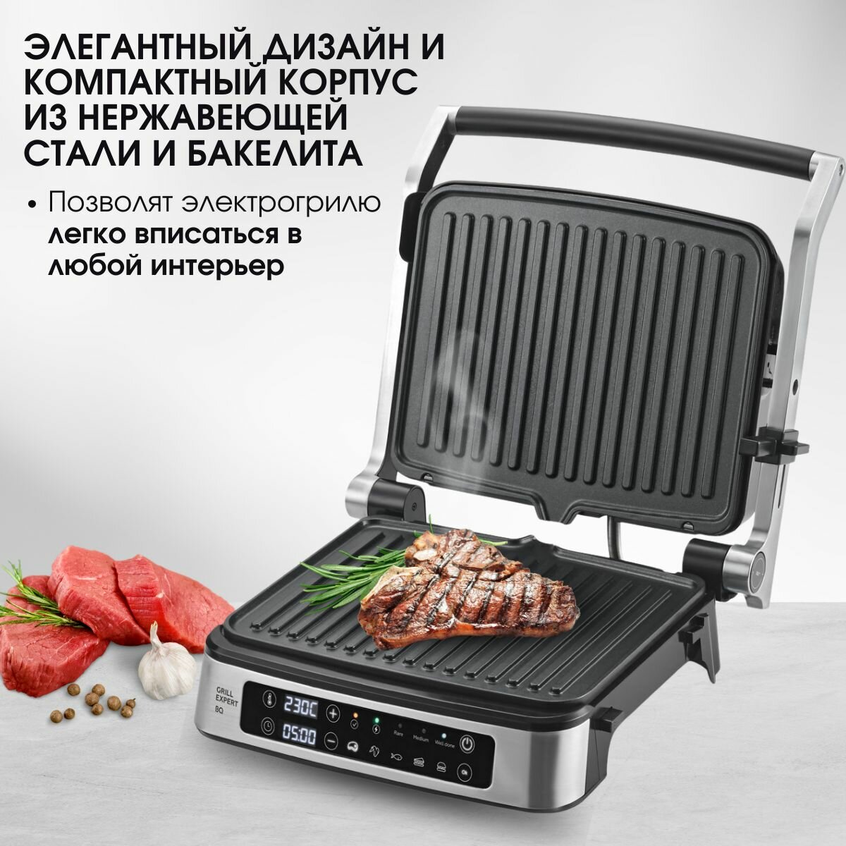 Электрогриль BQ GR1008 Черно-серебристый / 2 в 1 / Мощность 2200 Вт