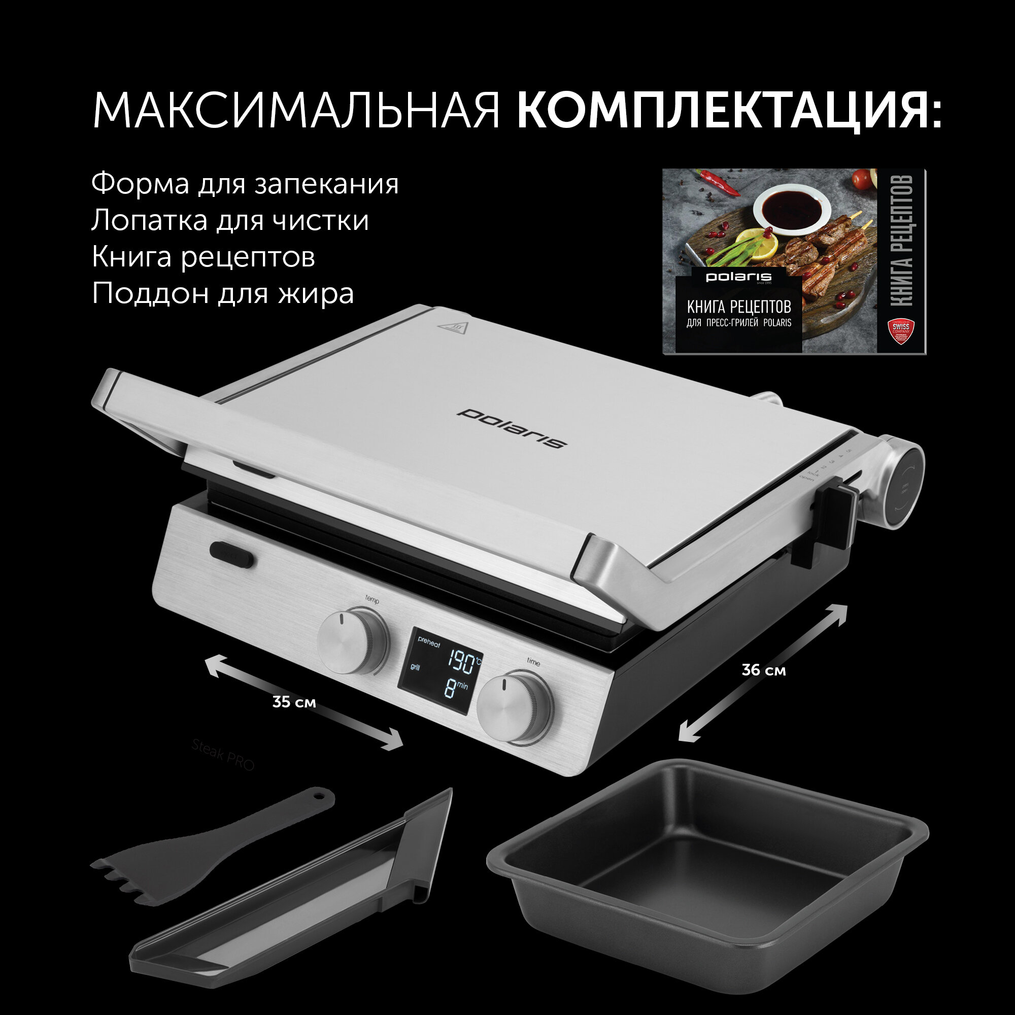 Гриль- пресс Polaris PGP-3005 (2000вт,4в1, таймер) серебряный