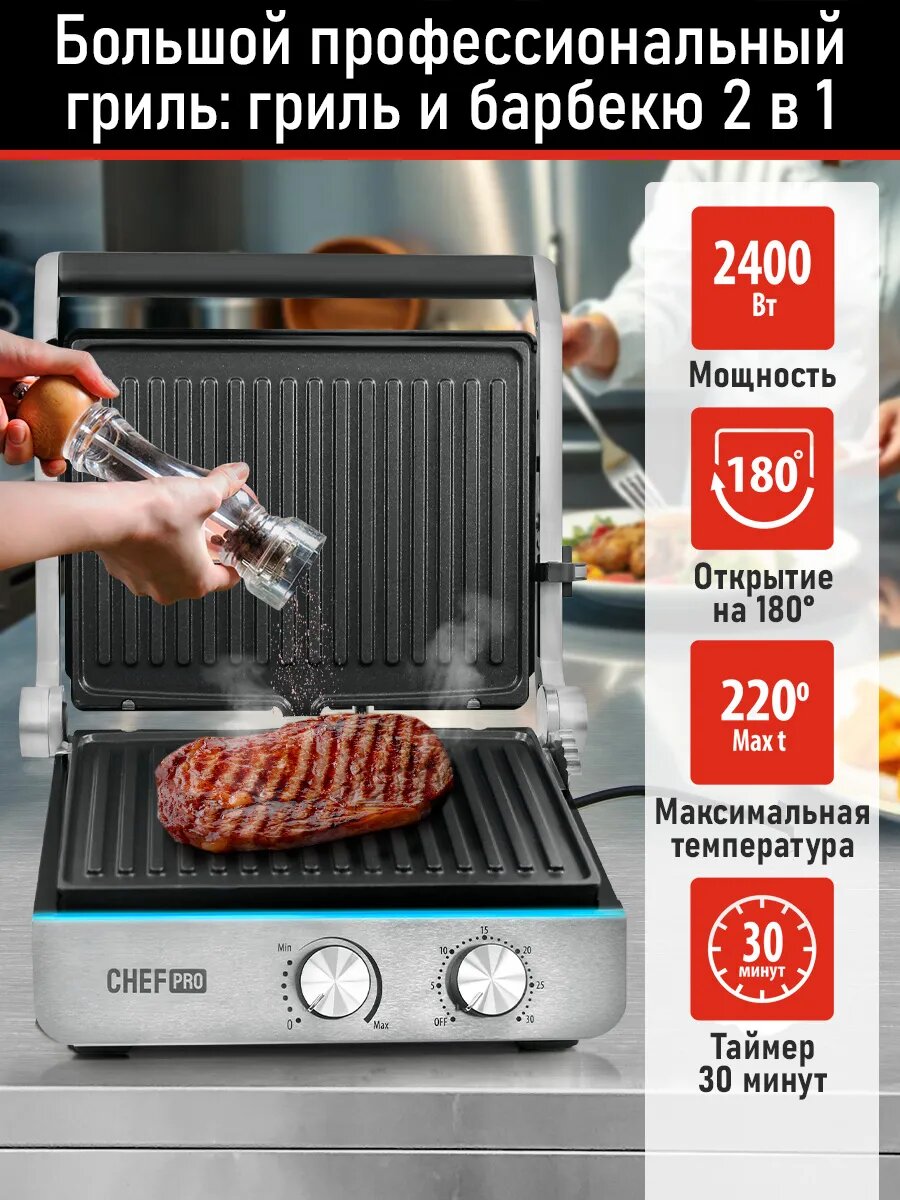 Гриль электрогриль CHEF PRO CF-SM1605A съемные панели барбекю