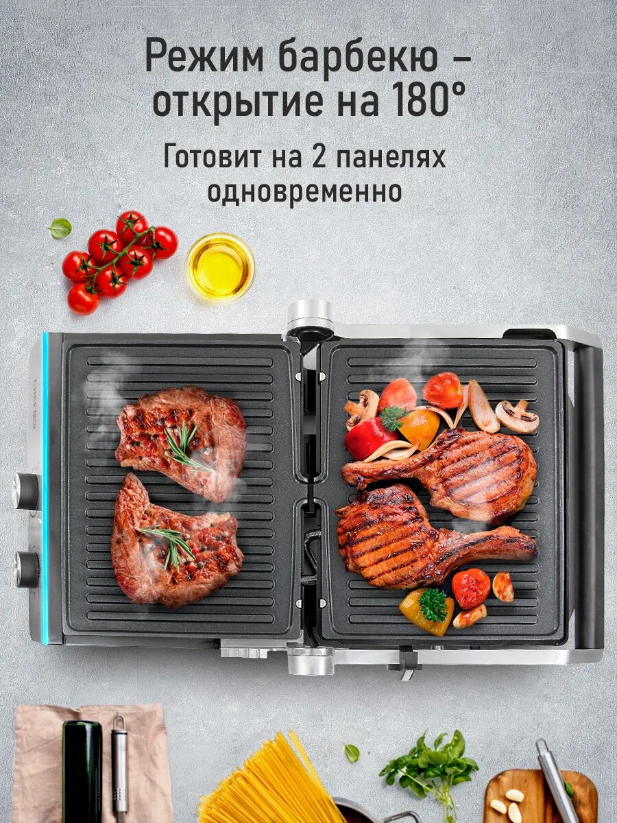 Электрогриль со съемными панелями 2400 Вт, режим барбекю интересное: