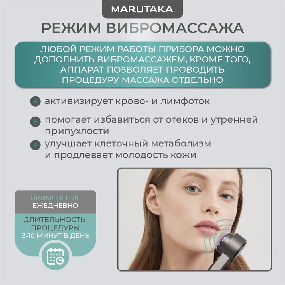 | Принцип работы | RF-лифтинг / вибрация / микротоки / светотерапия |