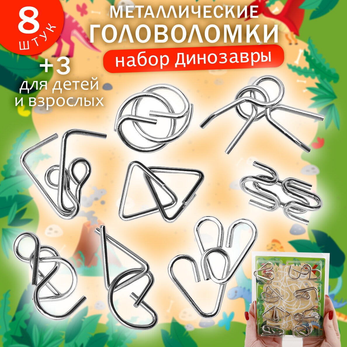 Купить Набор Головоломки металлические "Динозавры" N 3/3, подарочный набор из 8 шт. для детей и взрослых