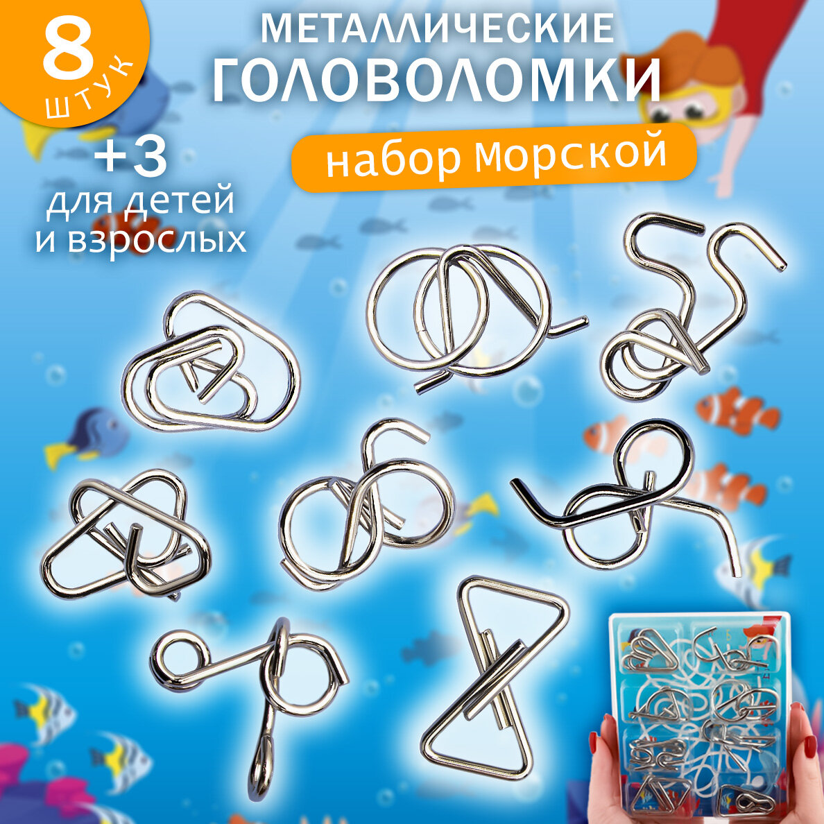 Купить Набор Головоломки металлические "Подводная жизнь" N 2/3, подарочный набор из 8 шт. для детей и взрослых