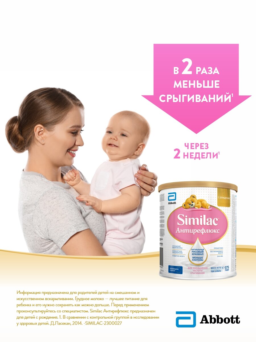 Смесь Similac Антирефлюкс для уменьшения частоты срыгиваний, с рождения, 375 г интересное: