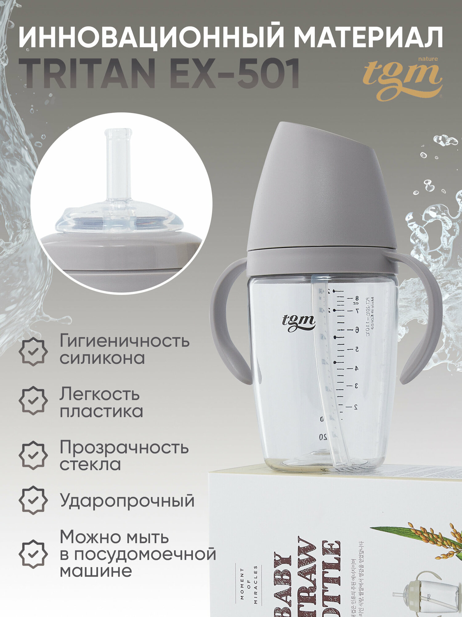 Поильник детский TGM Rice Grain Tritan 240 мл, warm grey интересное: