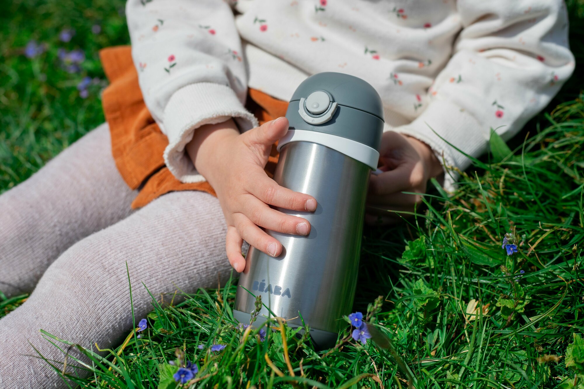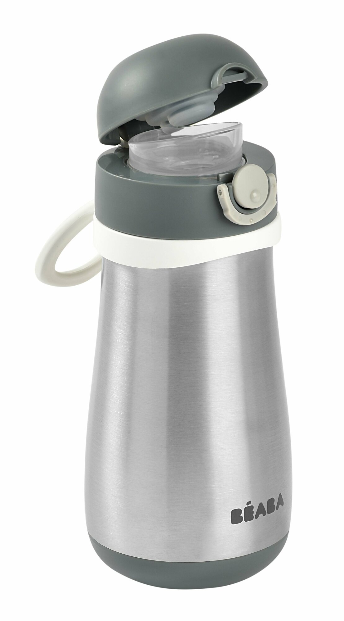 Поильник термос детский BEABA с крышкой, адаптированным носиком, съемной ручкой, термос детский для воды 350 мл., серый