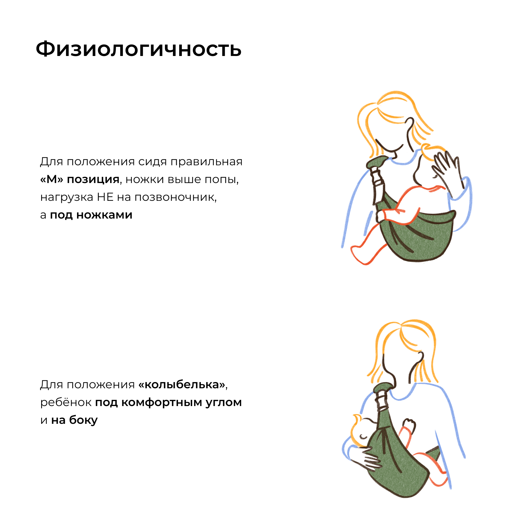 | Положение ребенка | в положении полулежа / сидя лицом к родителю |