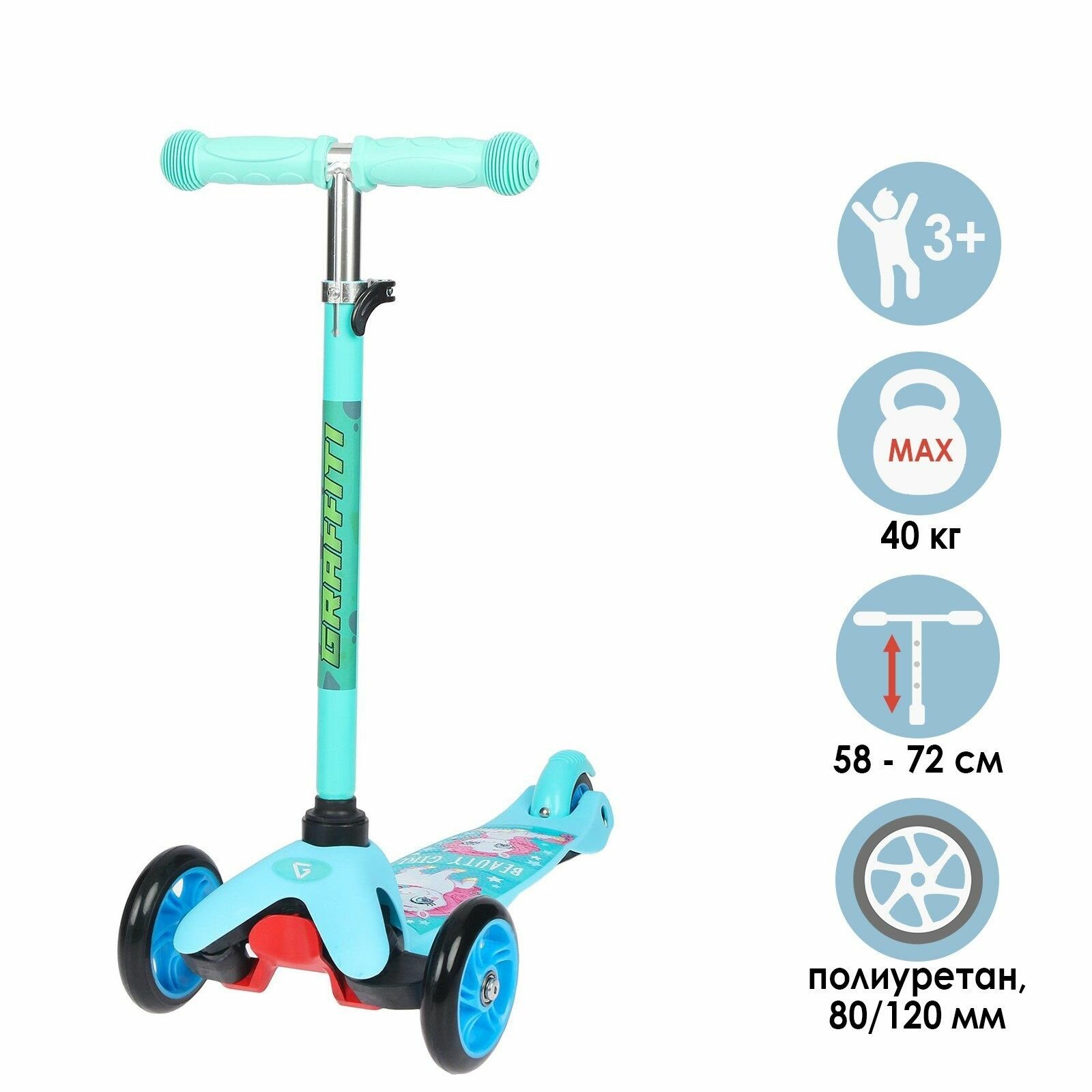 Cамокат GRAFFITI Пони, колёса PU 120/80 мм, ABEC 7