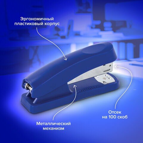 Степлер №24/6, 26/6 BRAUBERG "Standard+", до 30 листов, синий, 228609