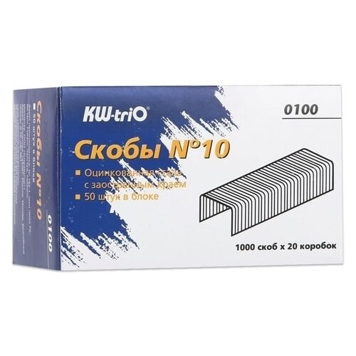 Купить Скобы для степлера №10, 1000 штук, KW-trio, до 20 листов, 0100, -0100