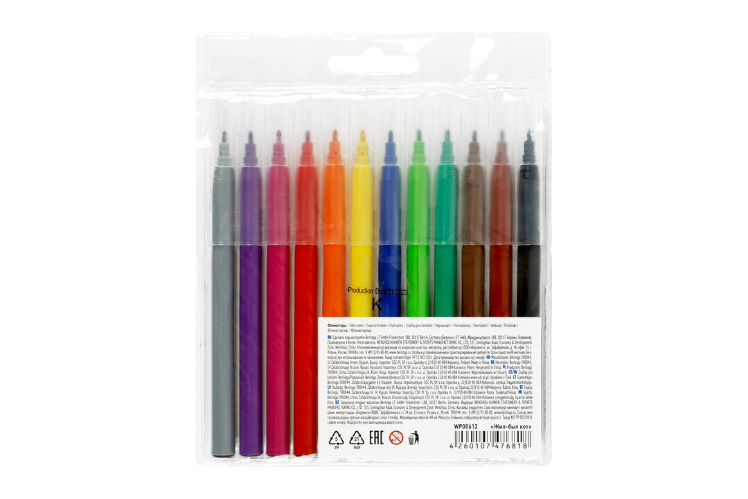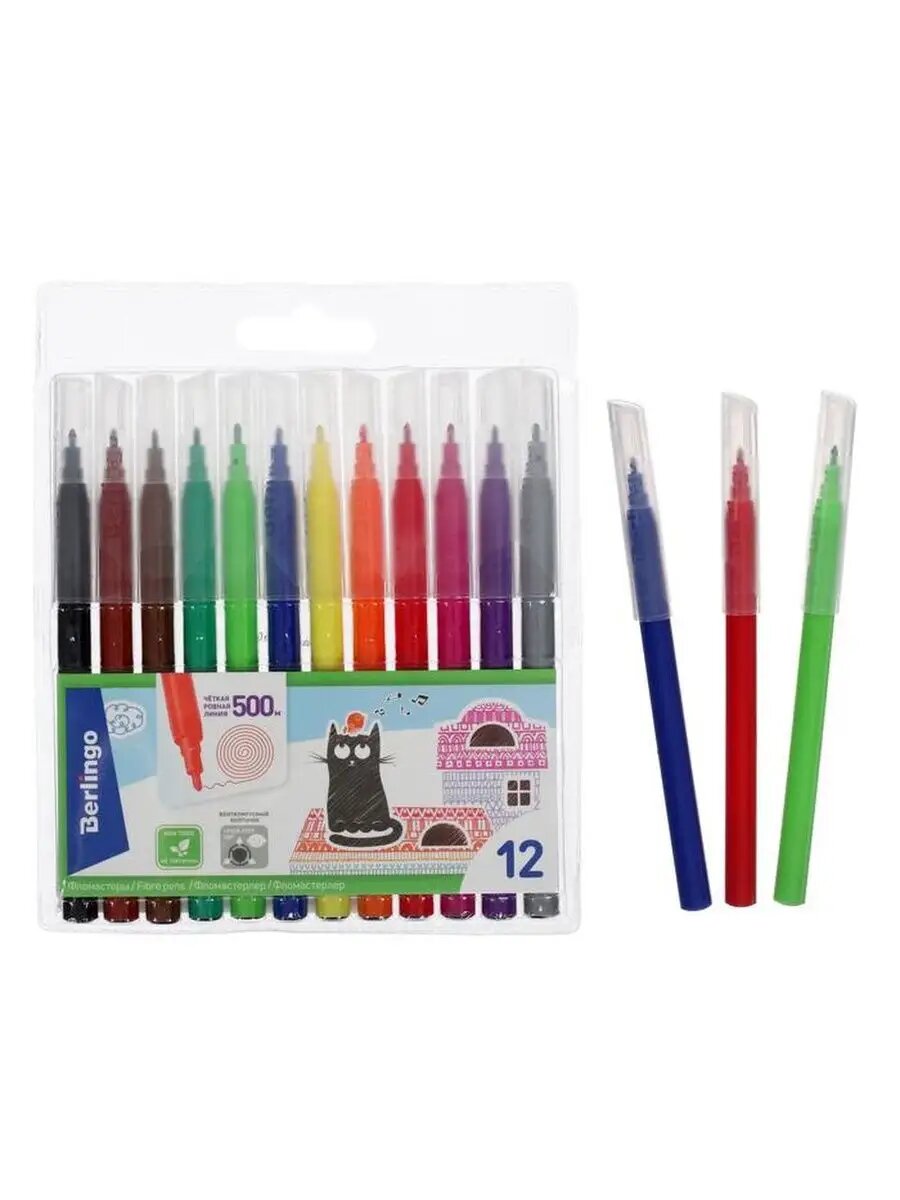 Набор фломастеров 12 цветов Berlingo "Жил-был кот" (линия 2мм, смываемые) блистер, 12 уп. (WP00612)