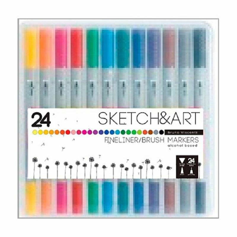 Набор маркеров для скетчинга Bruno Visconti "SKETCH&ART" двухсторонние ( кисточка и линер ), 12 цветов арт.22-0082