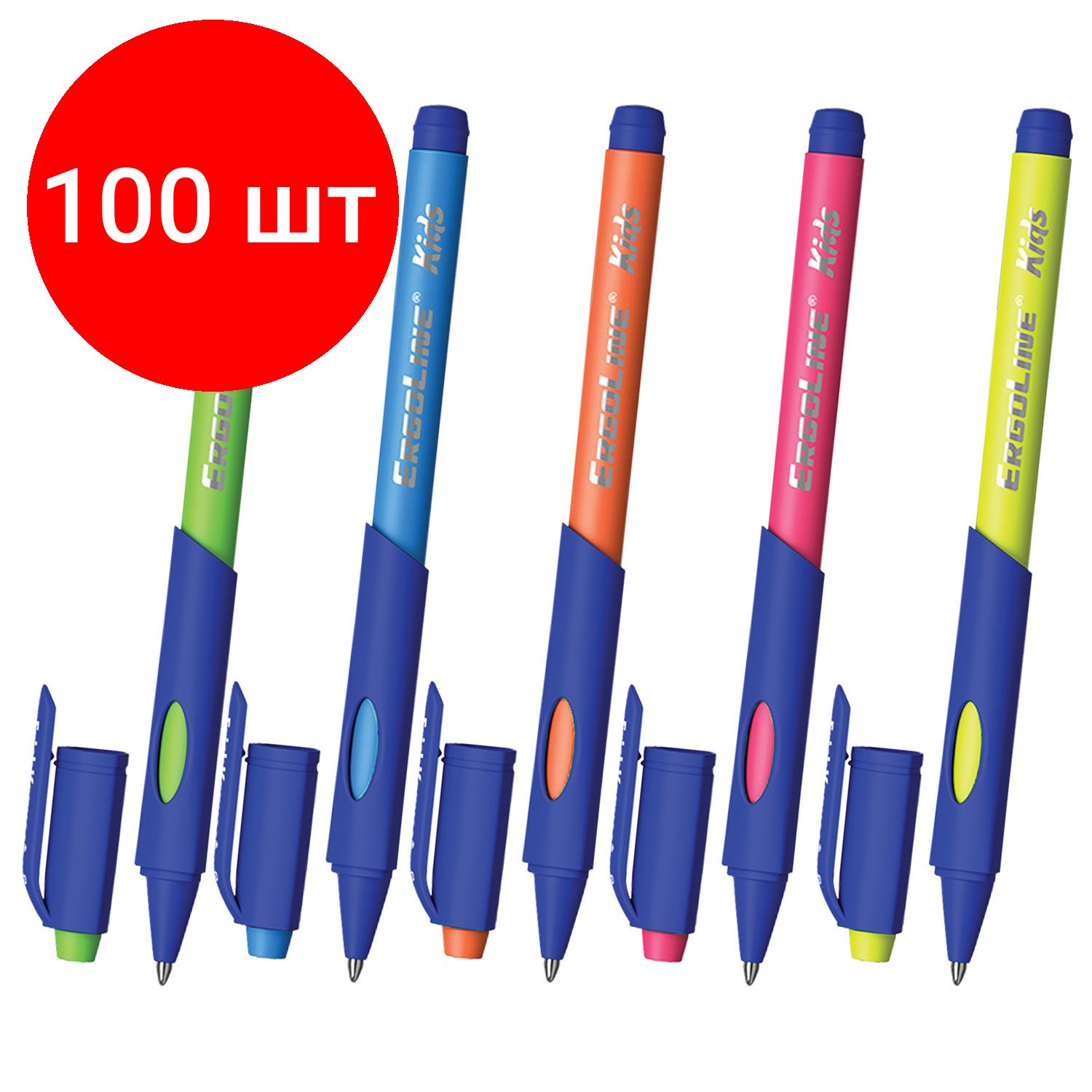 Купить Комплект 100 шт, Ручка шариковая масляная ERICH KRAUSE "Ergoline Kids", синяя, корпус ассорти, узел 0.7 мм, линия письма 0.35 мм, 41539