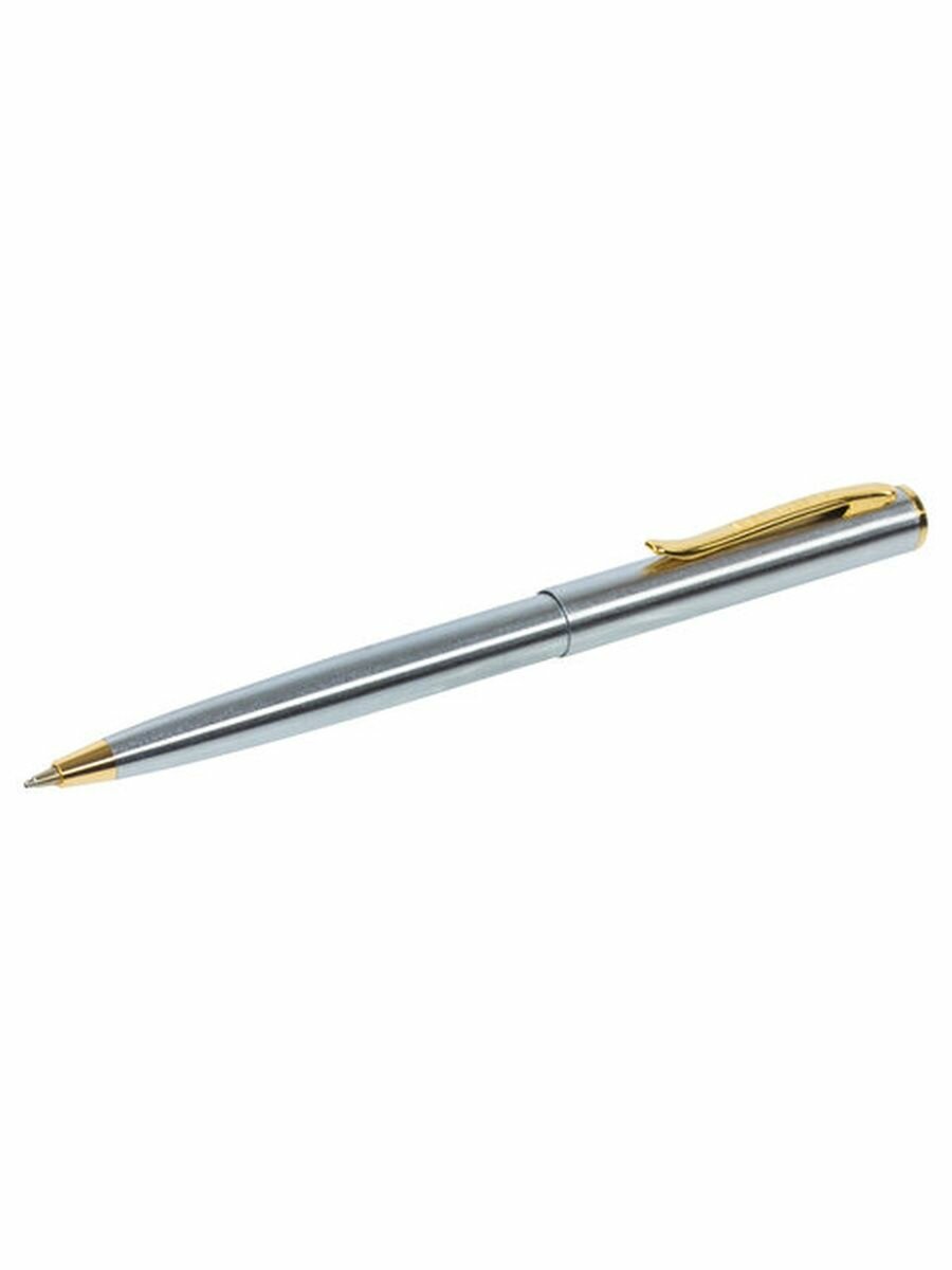 Ручка шариковая подарочная мужчине и женщине Brauberg Piano, Синяя, корпус серебристый с золотистым, линия письма 0,5 мм, 143472