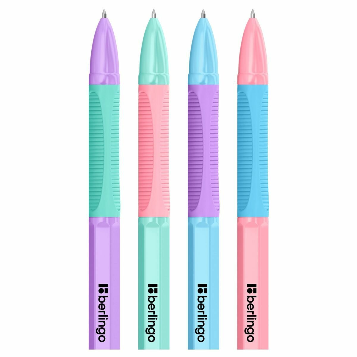 Набор 10 шт. - Ручка шариковая Berlingo "Tribase grip color zone" синяя, 0,7 мм, корпус ассорти, с грипом CBp_70967