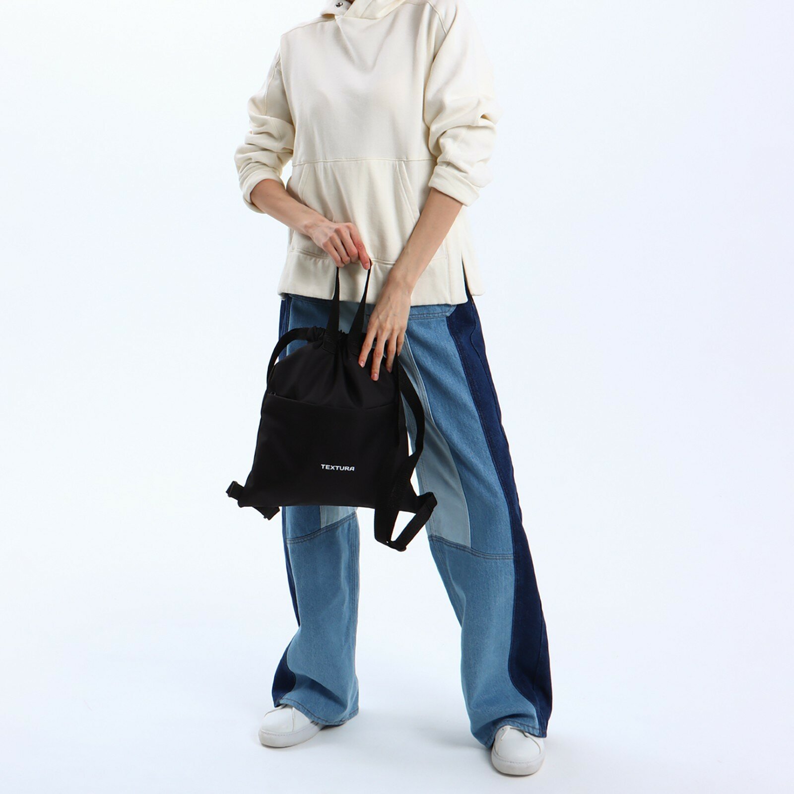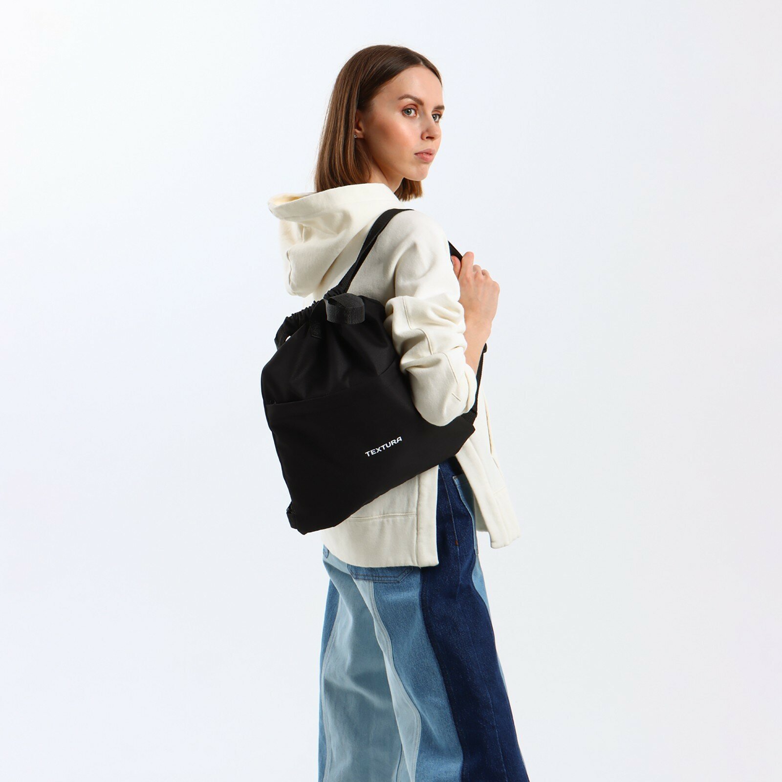 Купить Мешок для обуви на стяжке, наружный карман, TEXTURA, цвет чёрный