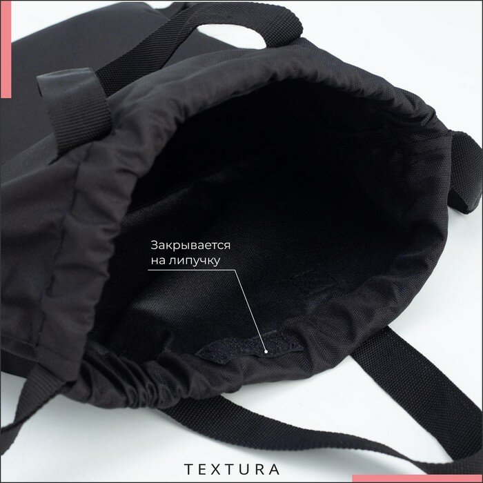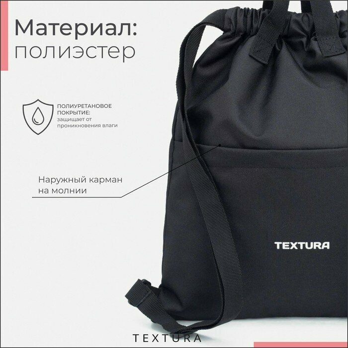 Мешок для обуви на стяжке, наружный карман, TEXTURA, цвет чёрный интересное: