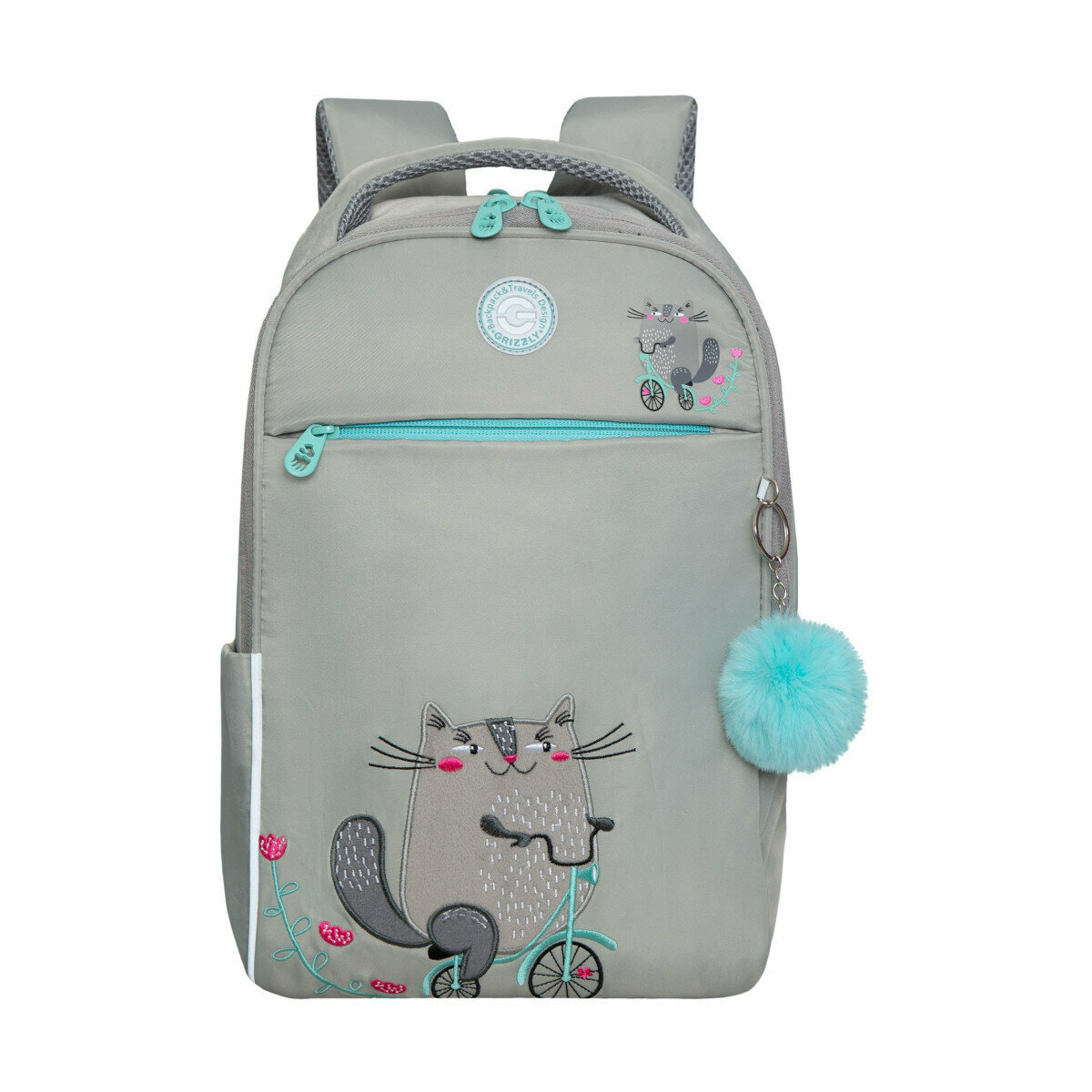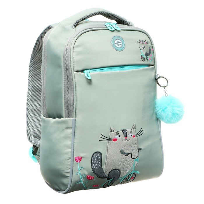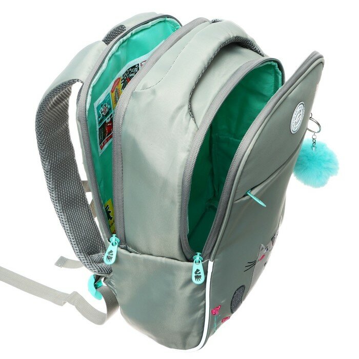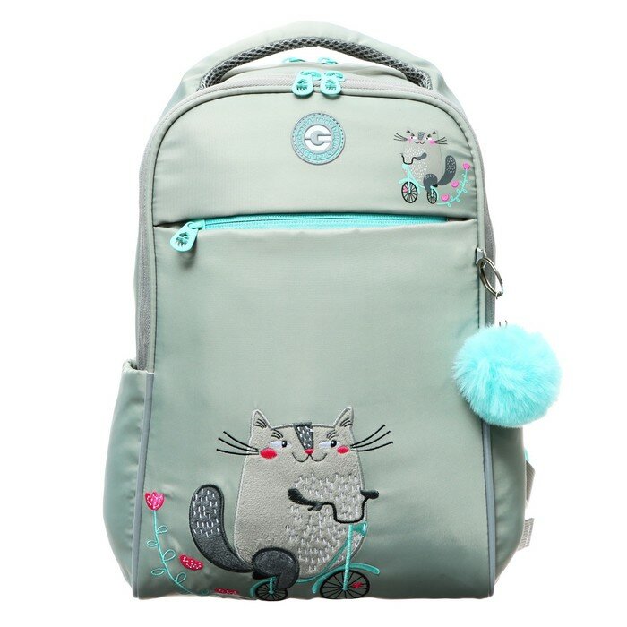 Рюкзак Grizzly "Happy Cat", школьный, анатомическая спинка, отделение для ноутбука до 13", 39х28х12,5 см