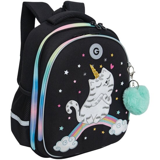 Купить Ранец Grizzly анатомическая спинка, c брелоком, RAINBOW CAT, 36х28х20, RAz-486-2/1