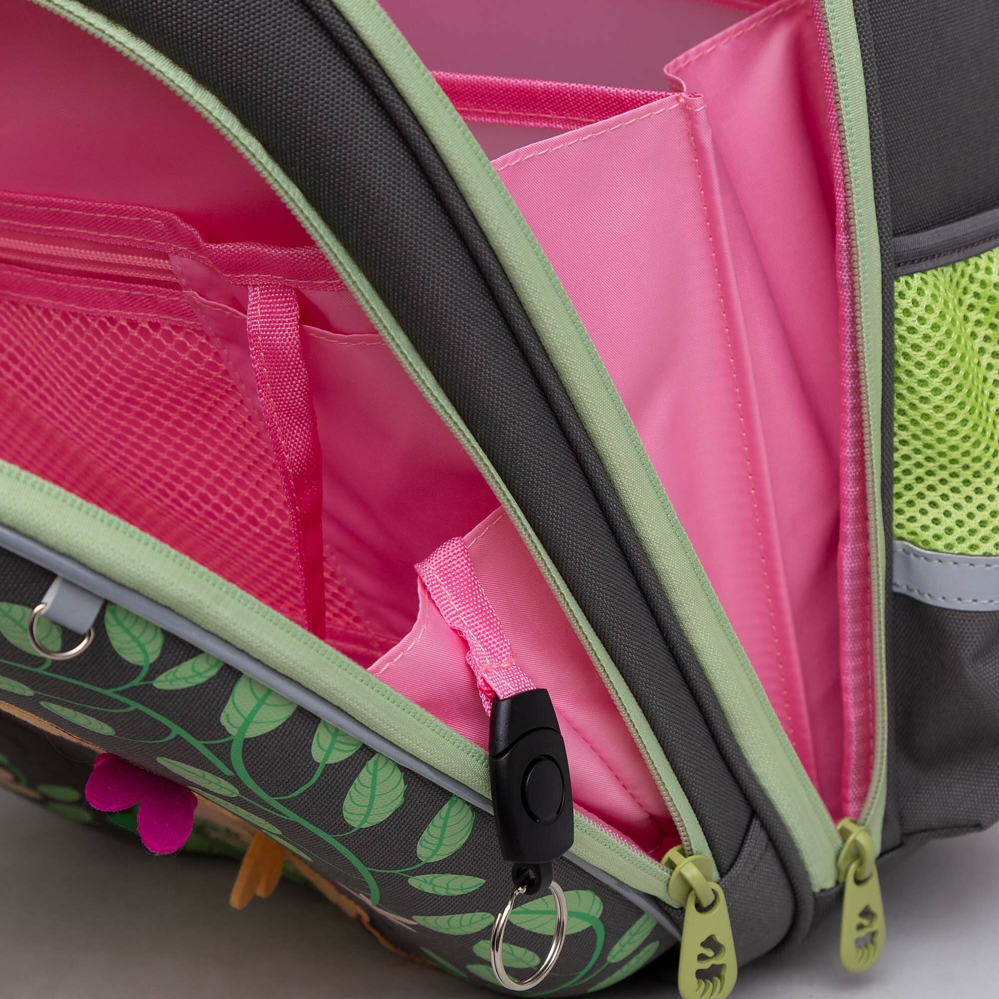 Ранец школьный формованный с анатомической спинкой с брелком, для девочки (серый-розовый)