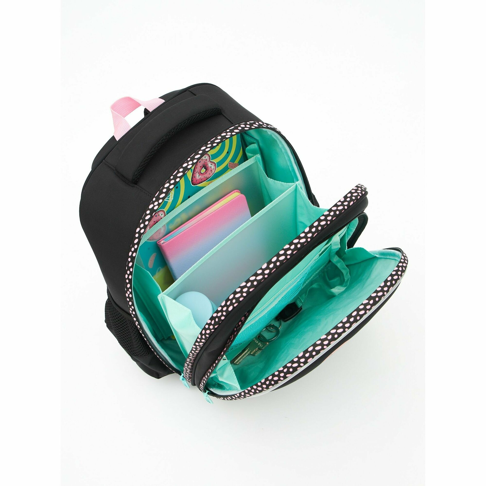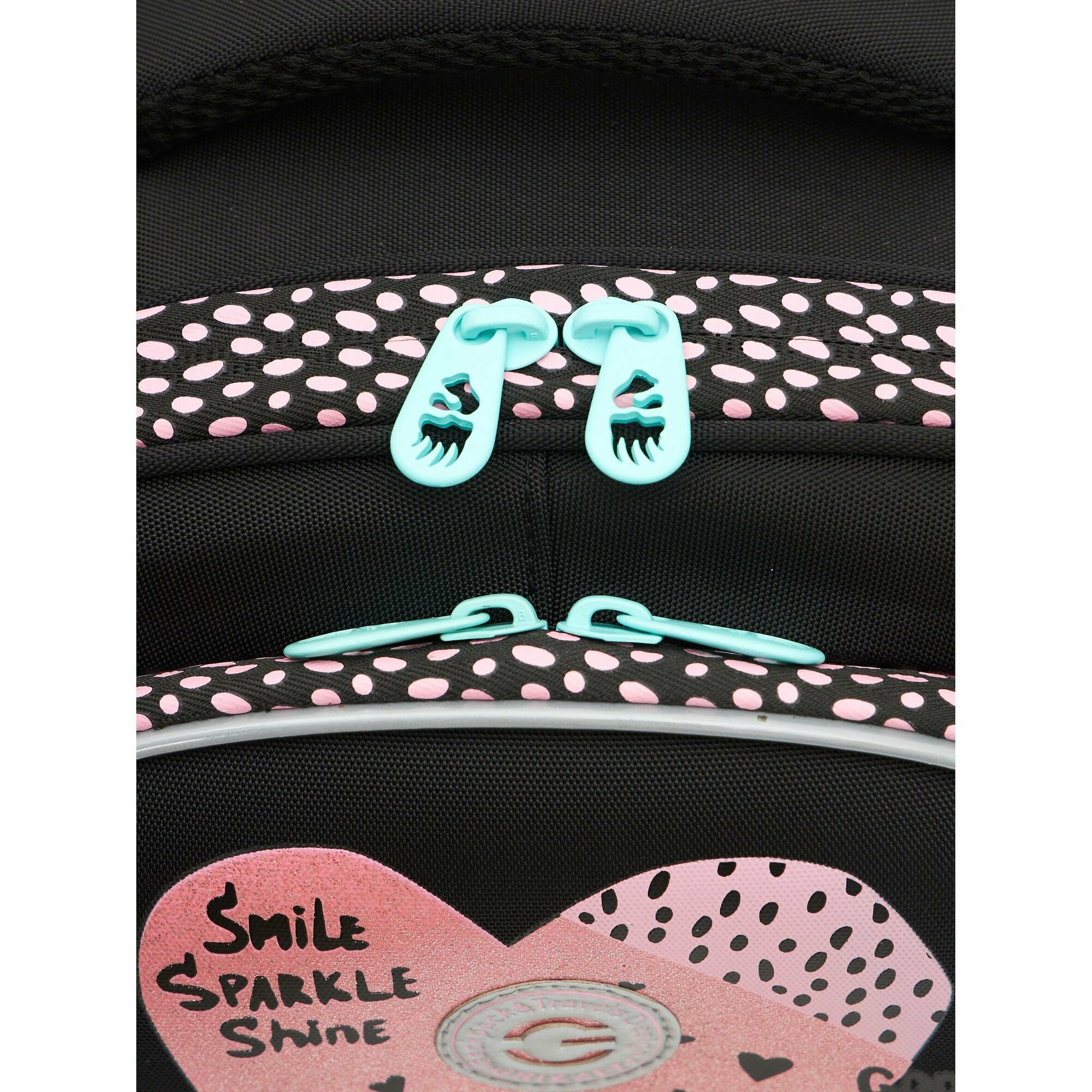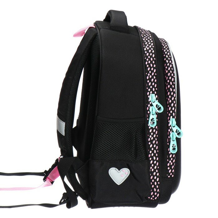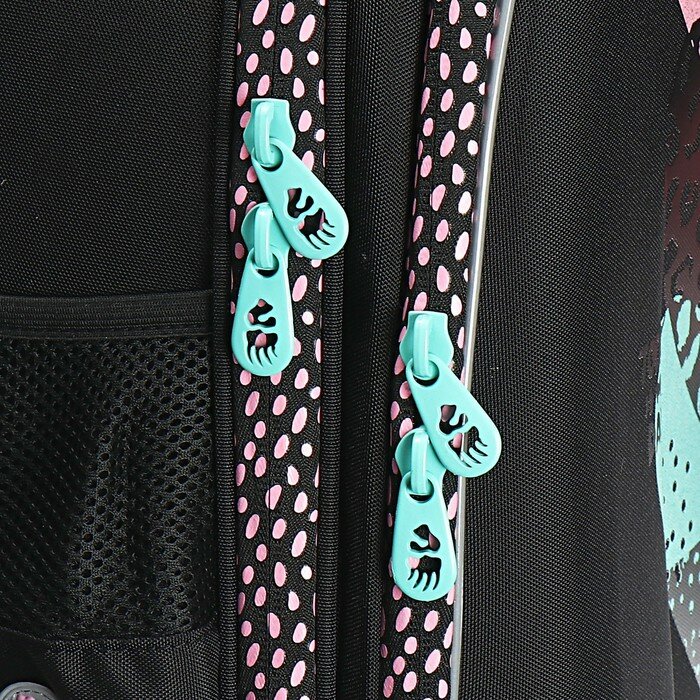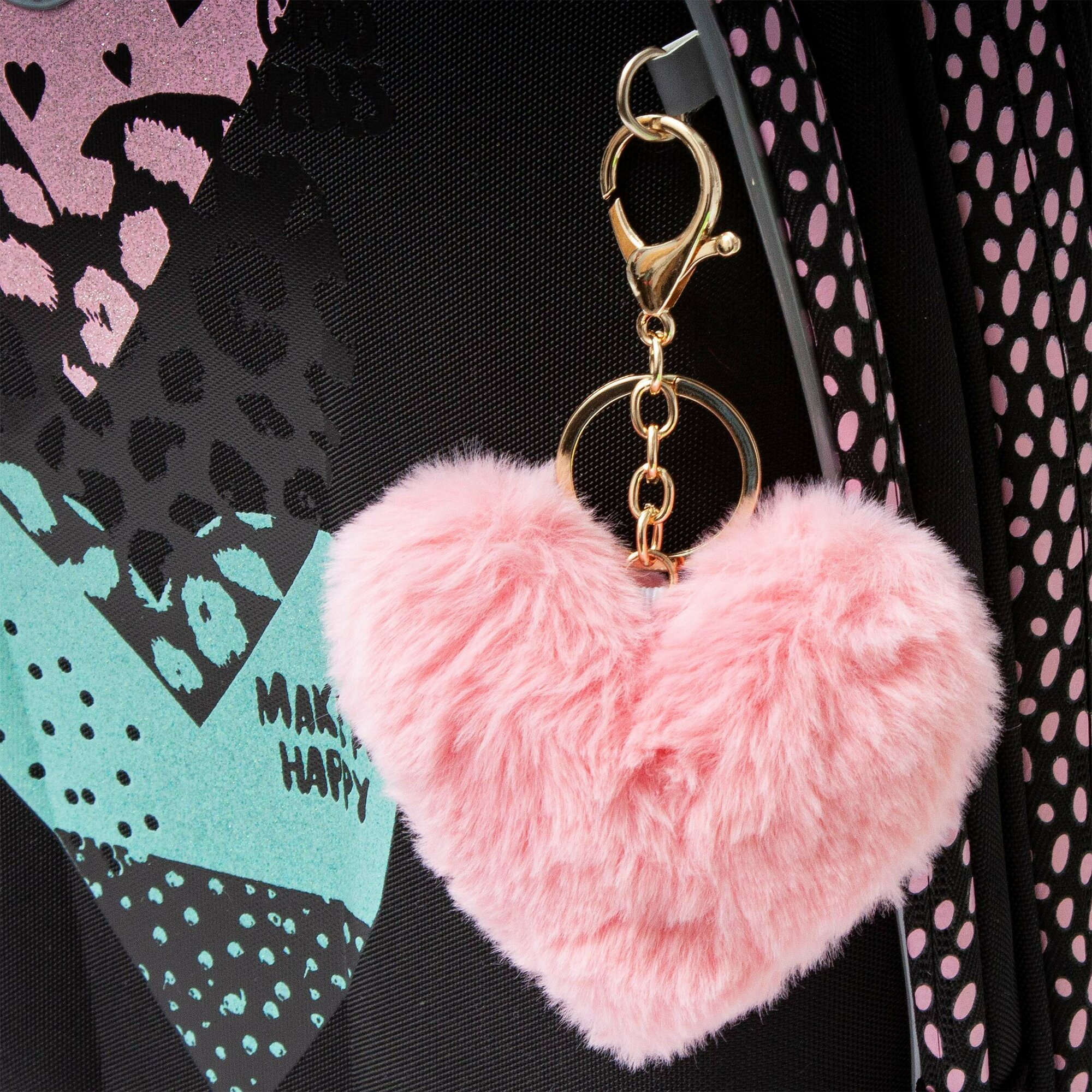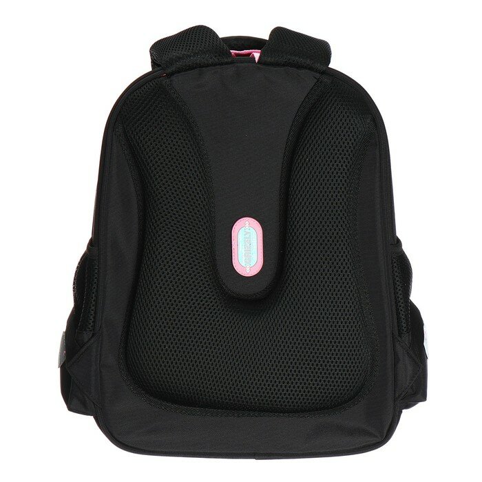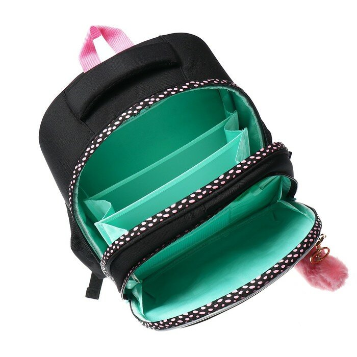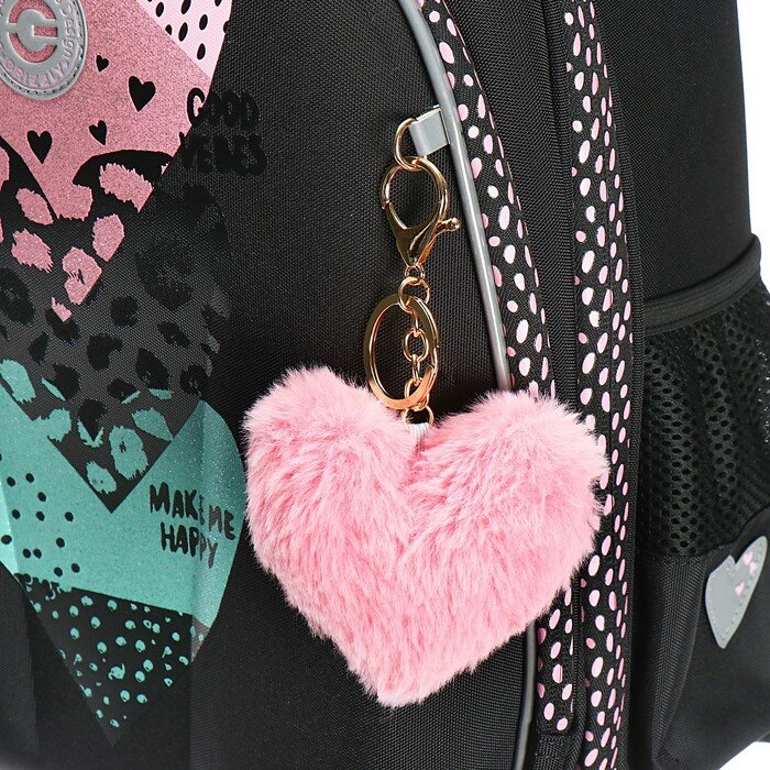 Ранец каркасный, 36 х 28 х 20 см, Grizzly, из плюша, + брелок, чёрный/розовый