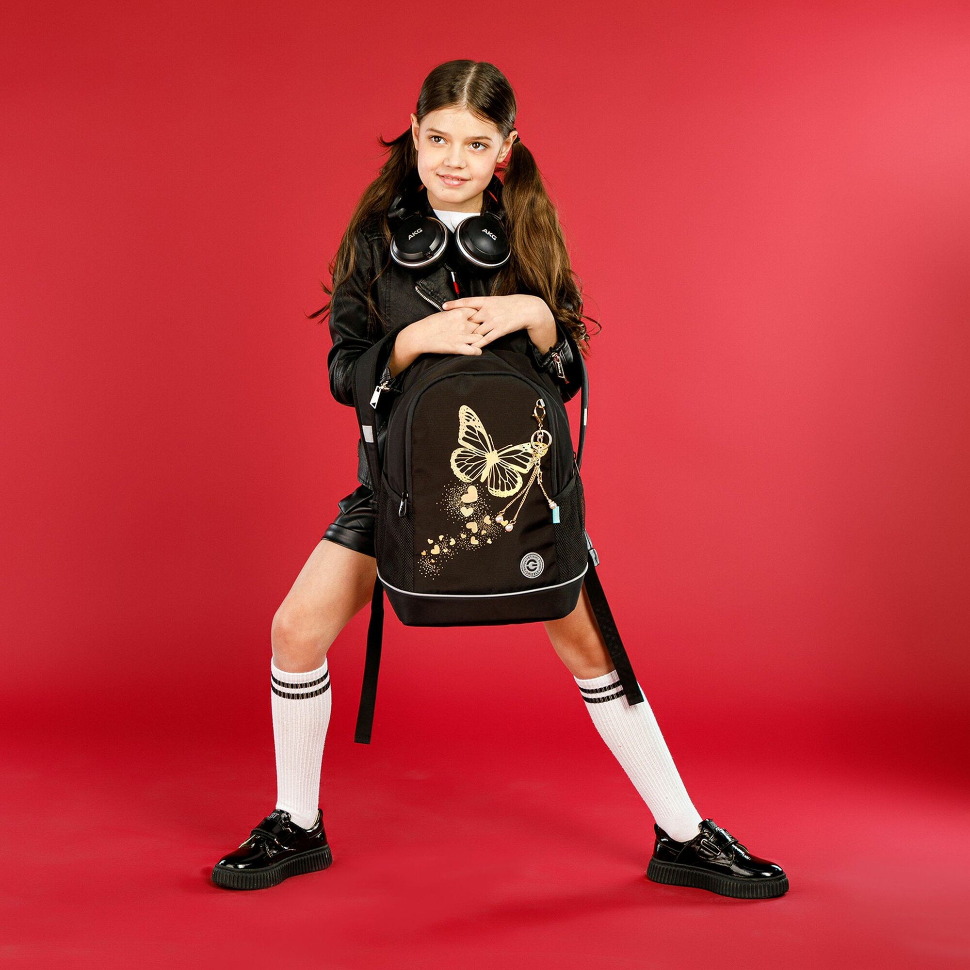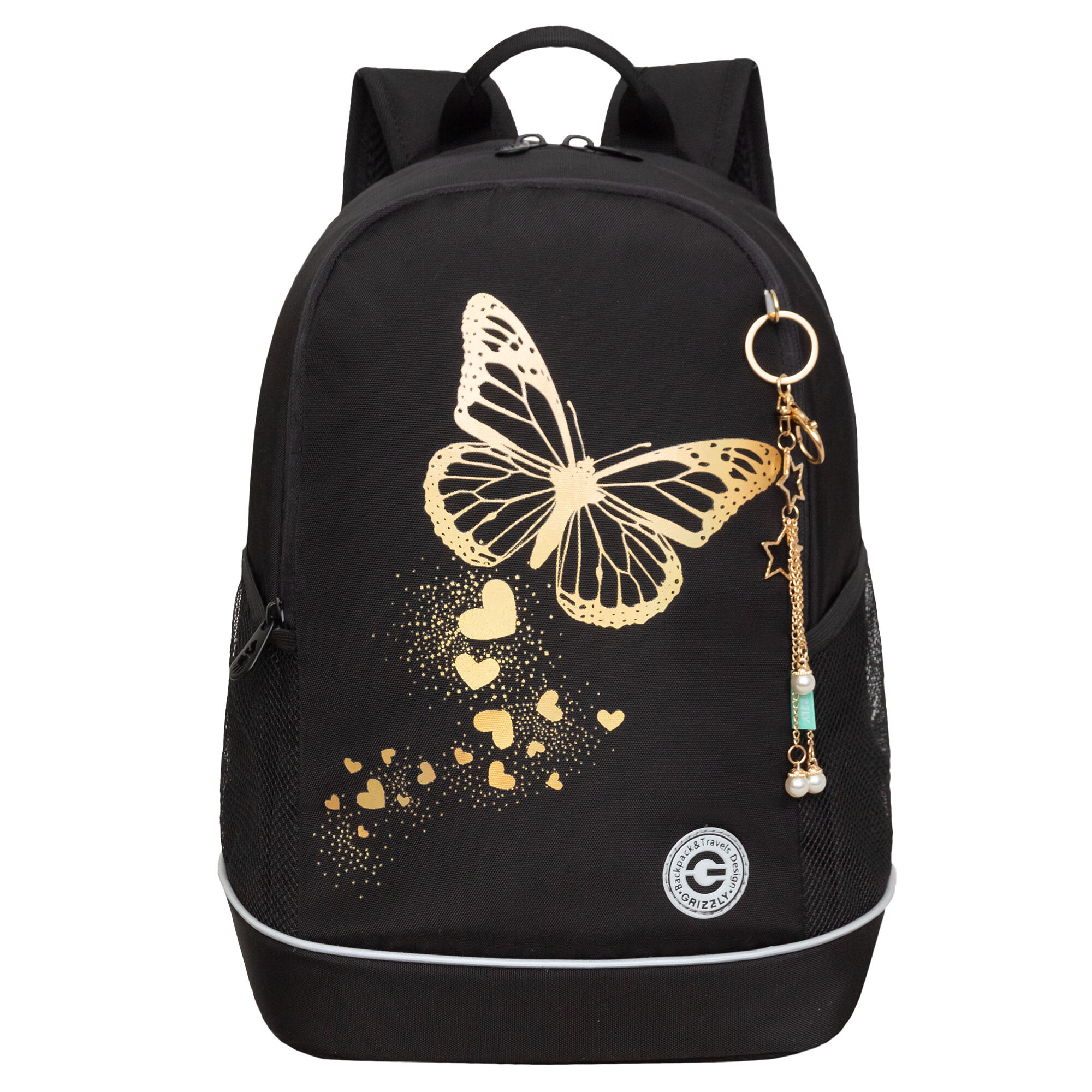 Рюкзак школьный, 38 х 28 х 18 см, Grizzly, эргономичная спинка, + брелок, чёрный